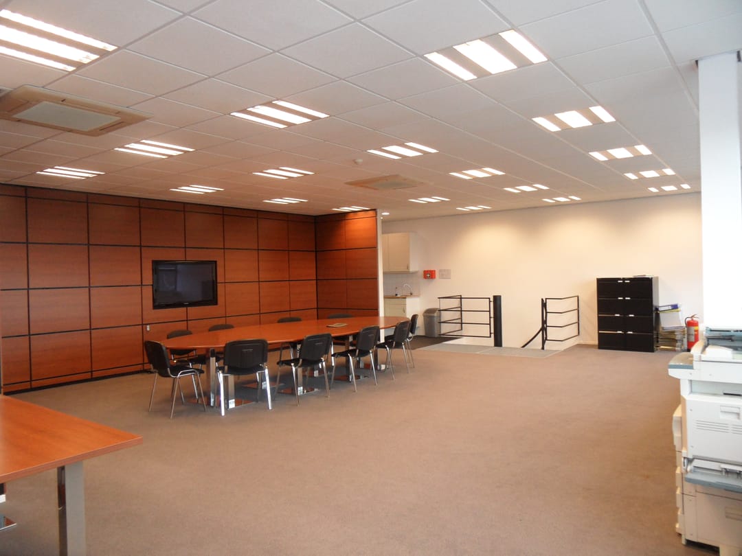 - Systeemplafond met verlichtingsarmaturen;