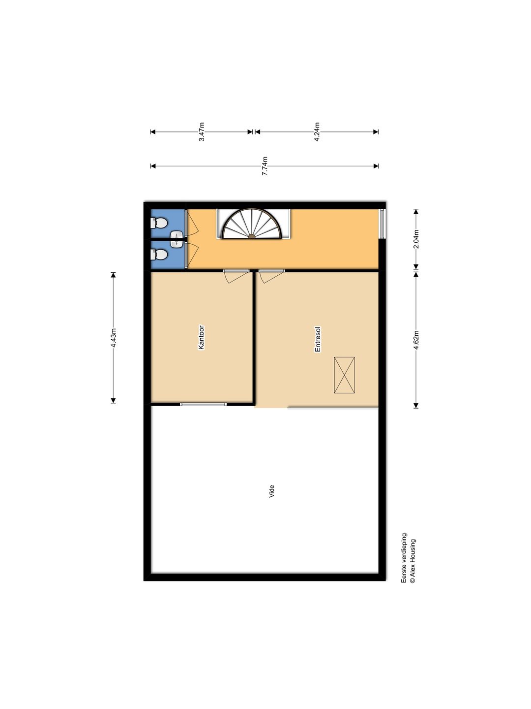 Het oppervlak bedraagt circa 250 m² v.v.o. en als volgt verdeeld: