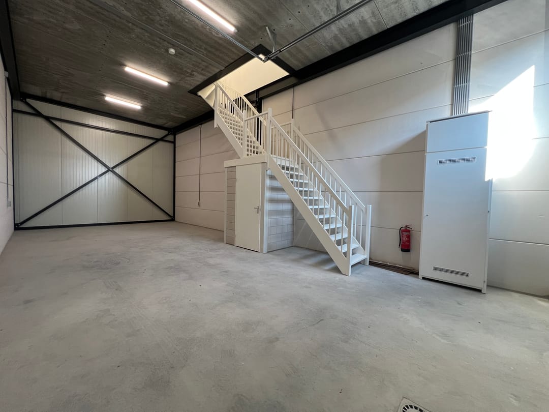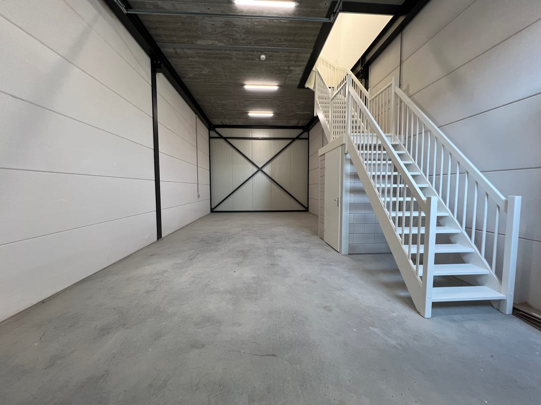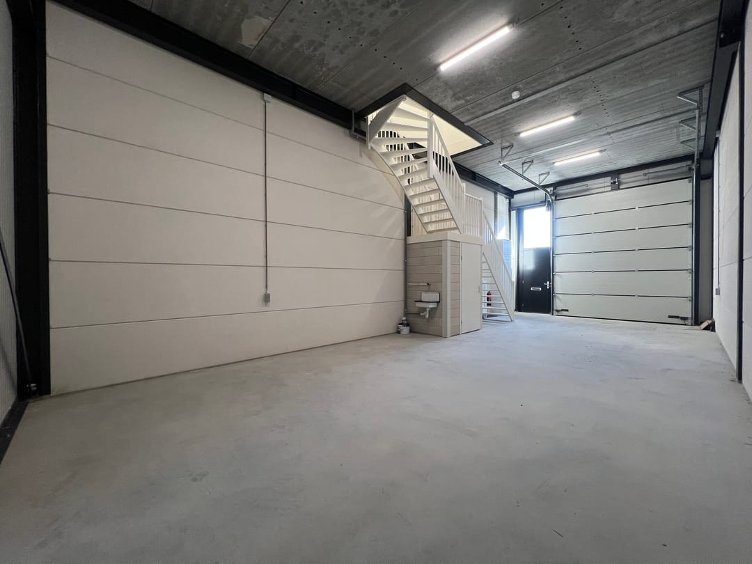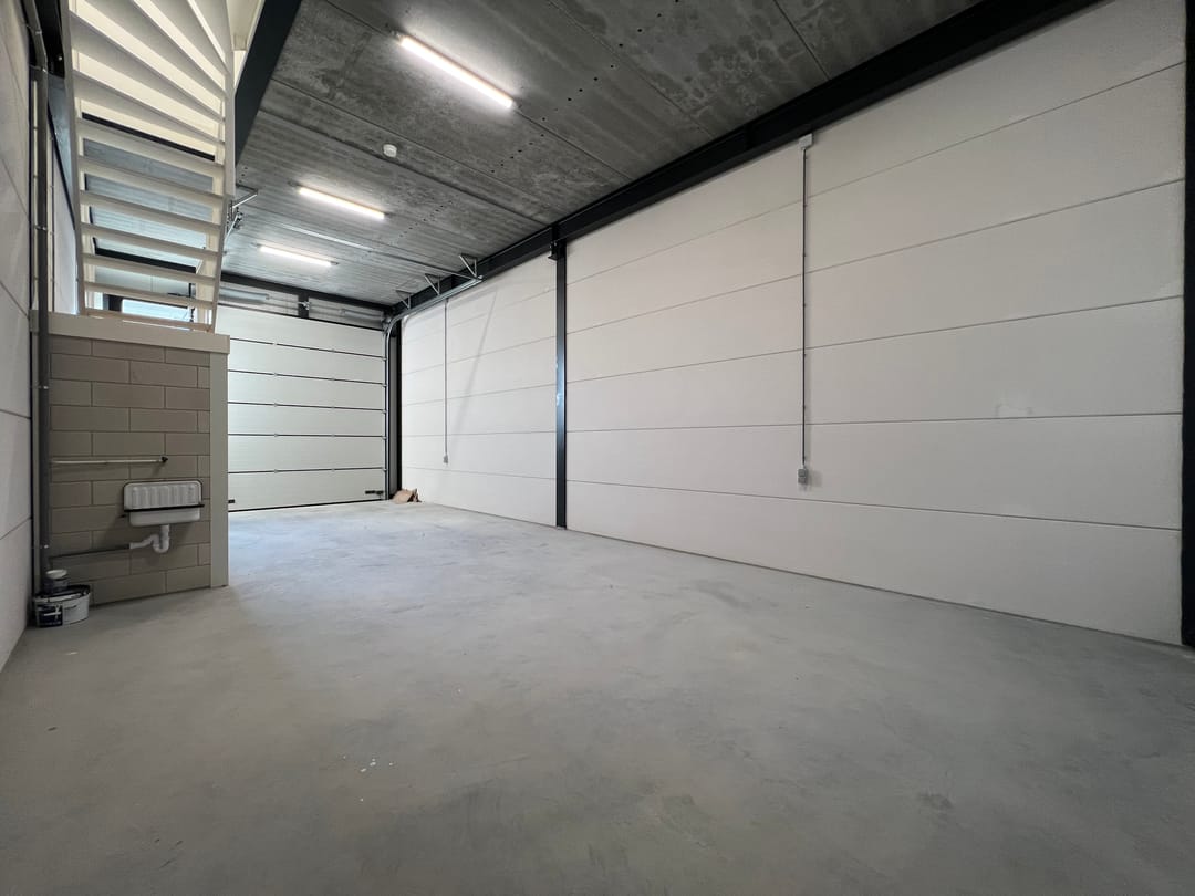 - Overheaddeuren, betonvloer, toilet en pantry