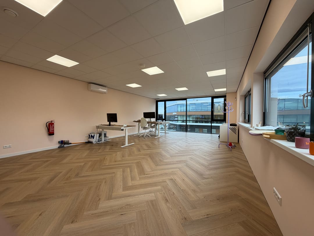 Deze unit is duurzaam gebouwd en klaar voor de toekomst. De begane grond is voorzien van een grote elektrische overheaddeur Ze hebben een uitgebreid afbouwpakket met onder andere op de verdieping: airconditioning, systeemplafond met verlichting, voorzetwanden en een pantry.