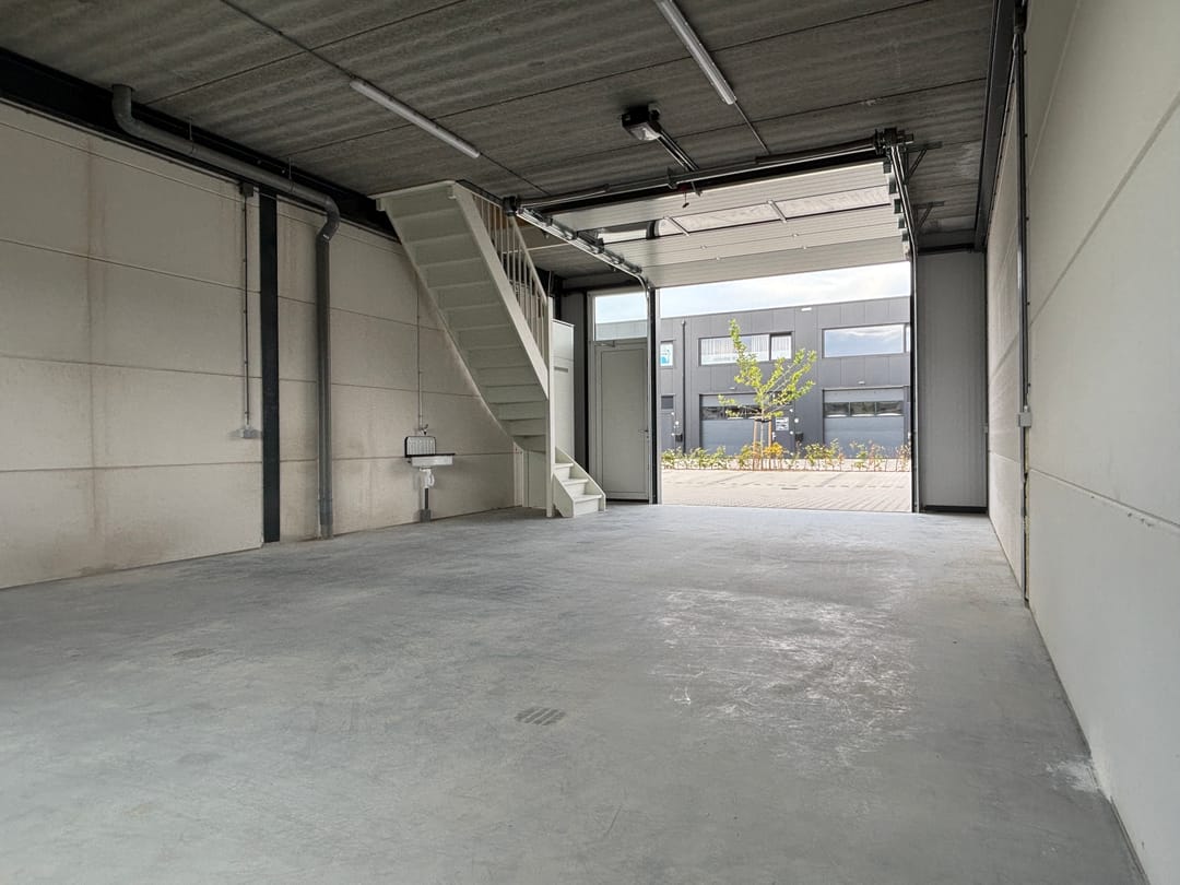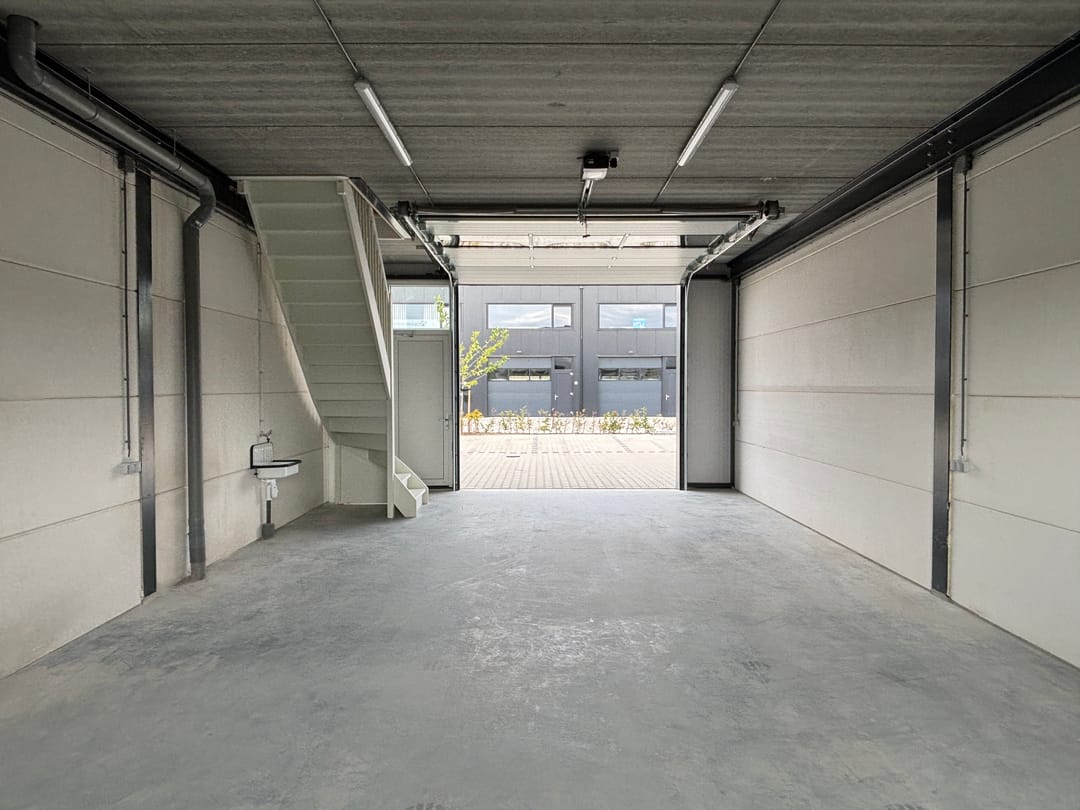 Bij binnenkomst stap je via de entree direct de bedrijfsruimte in, voorzien van een meterkast, uitstortgootsteen, een praktische betonvloer en een elektrisch bedienbare overheaddeur. Via de vaste trap bereik je de verdiepingsvloer: een veelzijdige ruimte die zich uitstekend leent als kantoor of opslag. Hier vind je bovendien een toilet, een keukenblok met boiler en moderne voorzieningen zoals airconditioning, terwijl de nette wand-, plafond- en vloerafwerking zorgen voor een verzorgde en professionele uitstraling.
