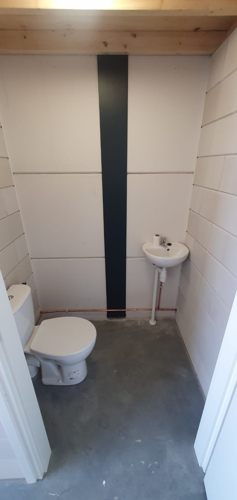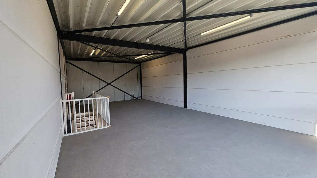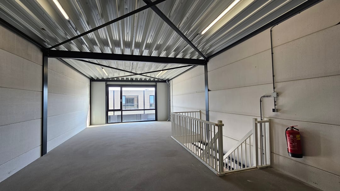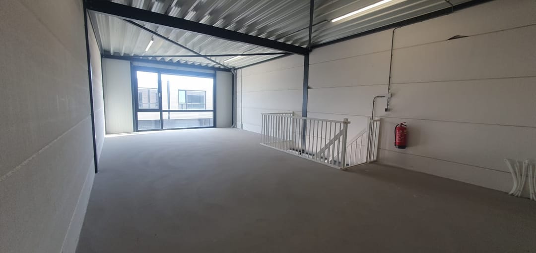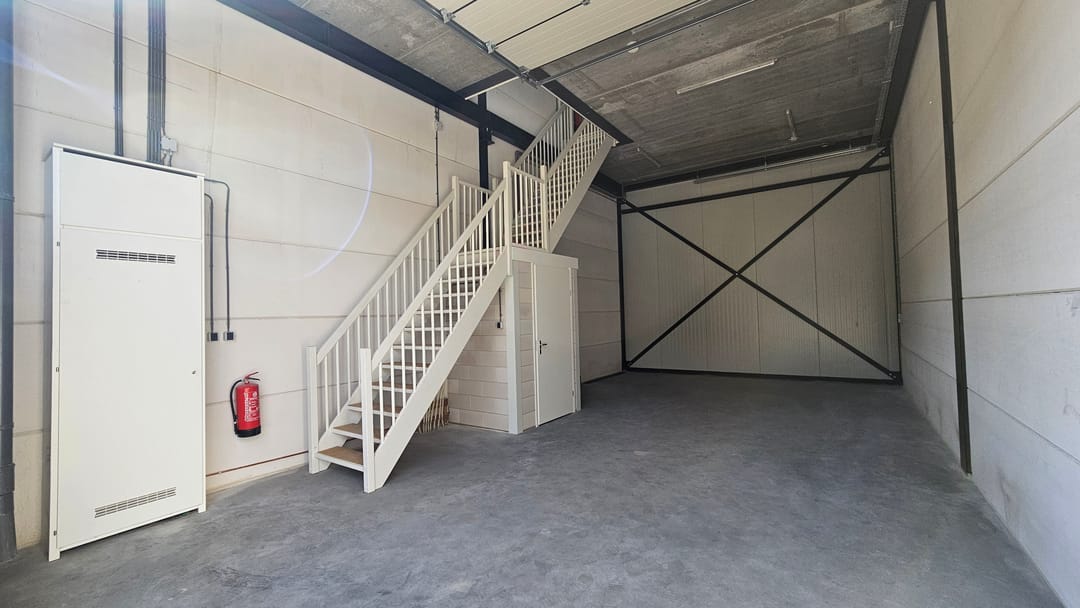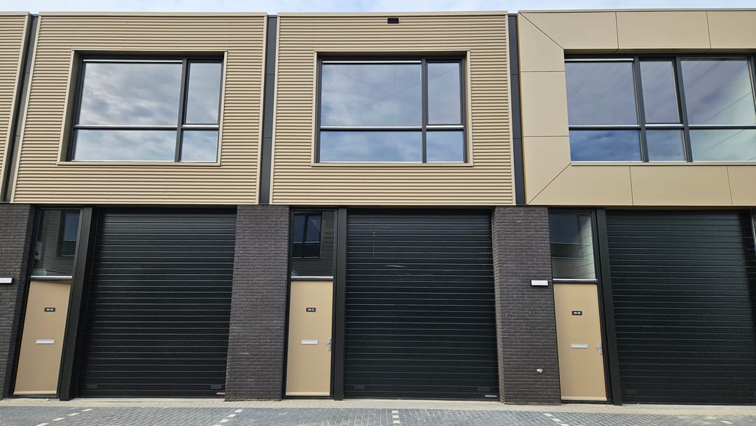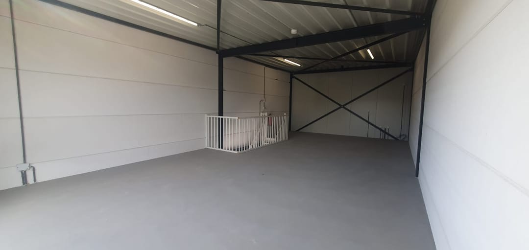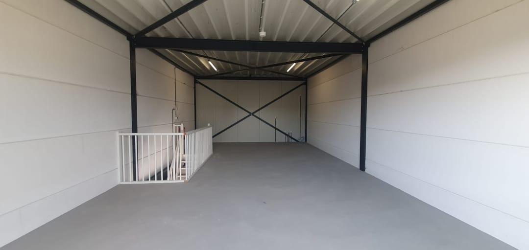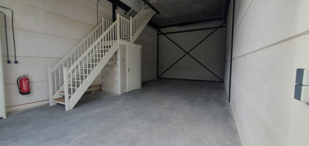 - Overheaddeuren, krachtstroom, betonvloer, toilet, inbouwarmaturen en te openen ramen