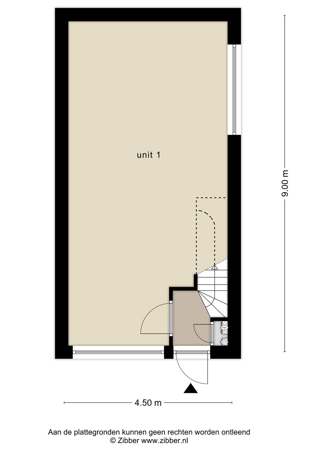 - ca. 44 m² bedrijfsruimte gelegen op de begane grond;
