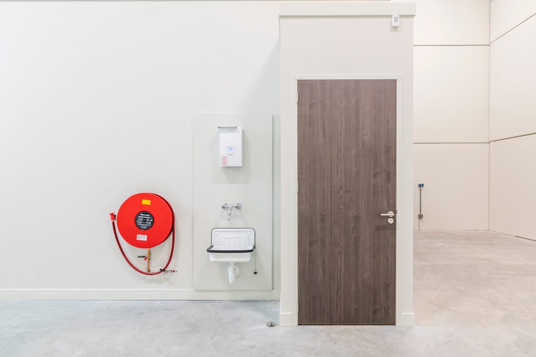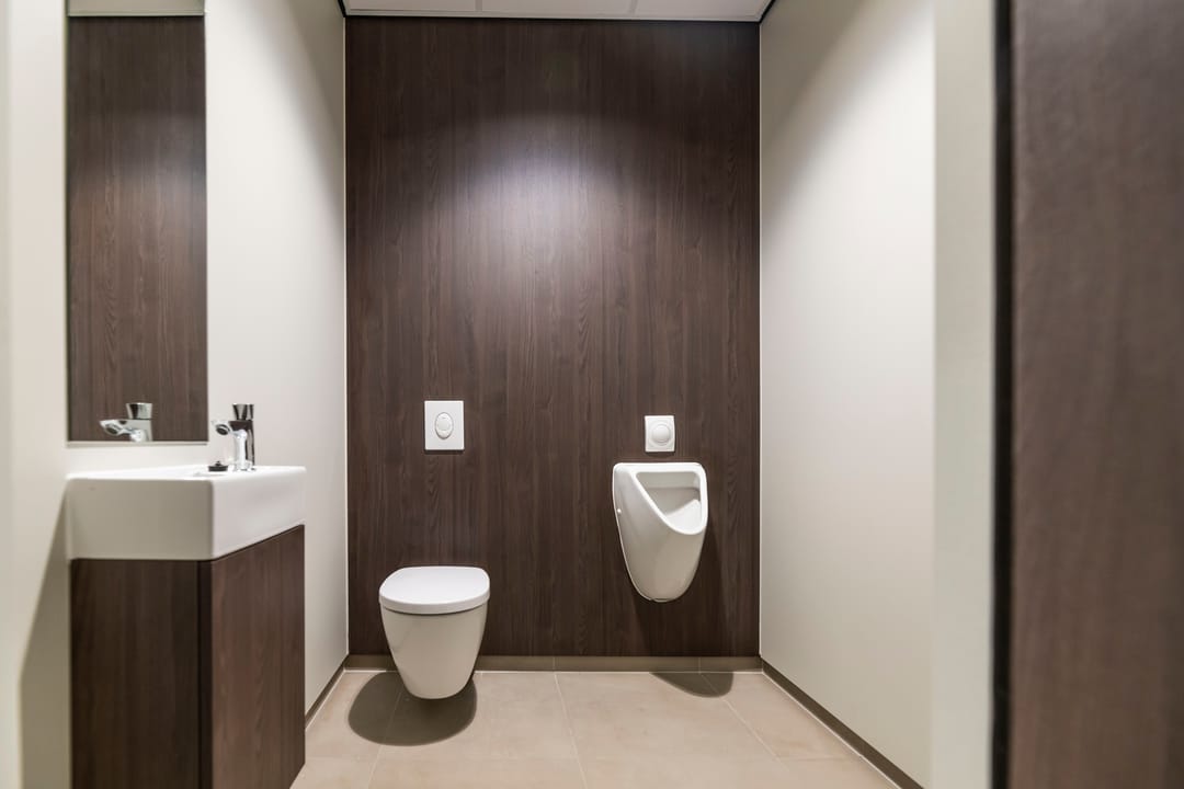 • toiletgroep (dames/heren) met urinoir, wandcloset, fonteintje en mechanische ventilatie;