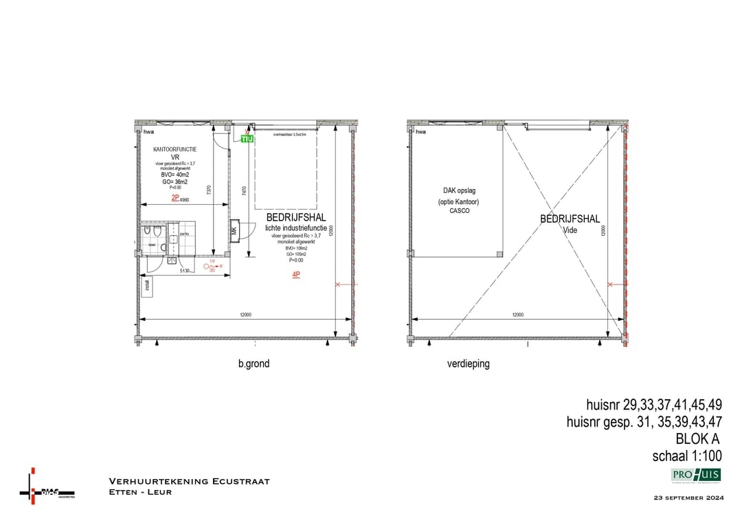 optie opslag/kantoor op de verdieping: ca 40 m²