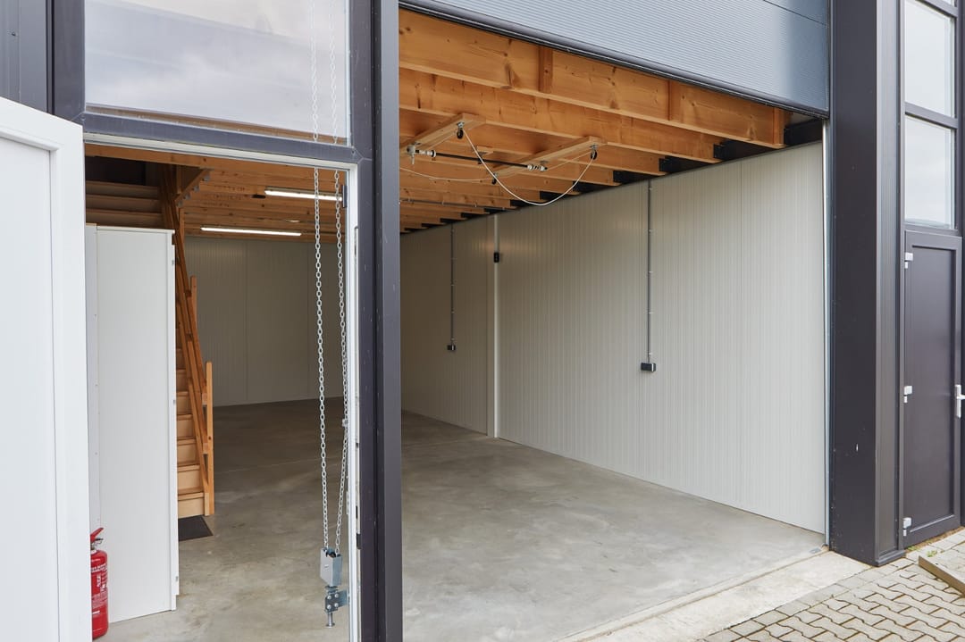 De aangeboden unit beschikt over een handbediende overheaddeur met een aparte loopdeur, tevens beschikt de unit over een betonnen vloer, eigen meterkast, elektra, water en afvoer. De verdieping is via een vaste (houten) trap te bereiken. Hier bevindt zich een toilet- en pantryvoorziening.