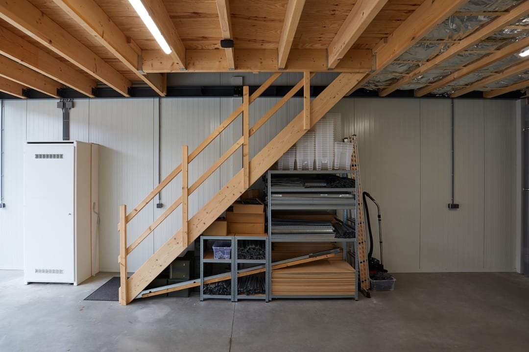 - De bedrijfsunit beschikt over een verdiepingsvloer met vaste trap;