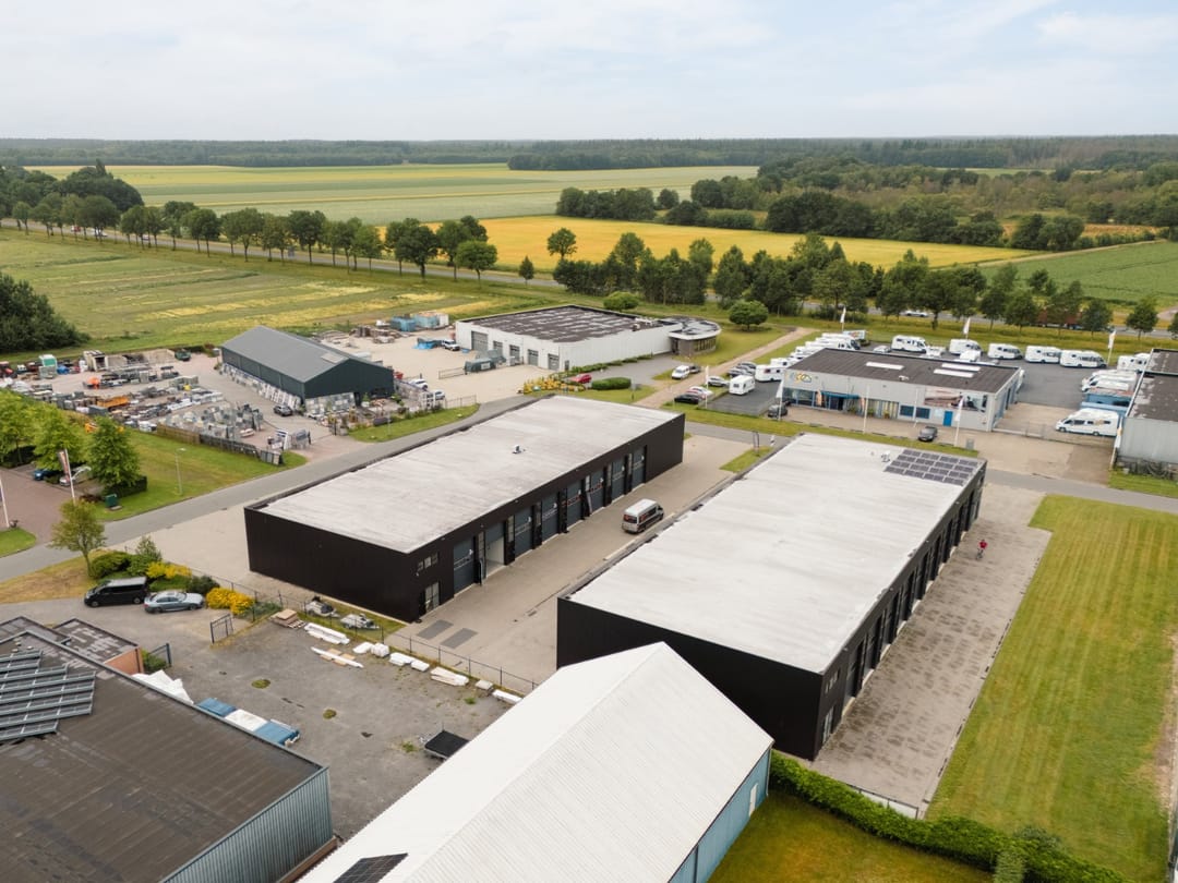 De bedrijfsunits in het bedrijfsverzamelgebouw zijn in een gesloten vorm gebouwd waarbij de units ruggelings aan elkaar zijn verbonden.