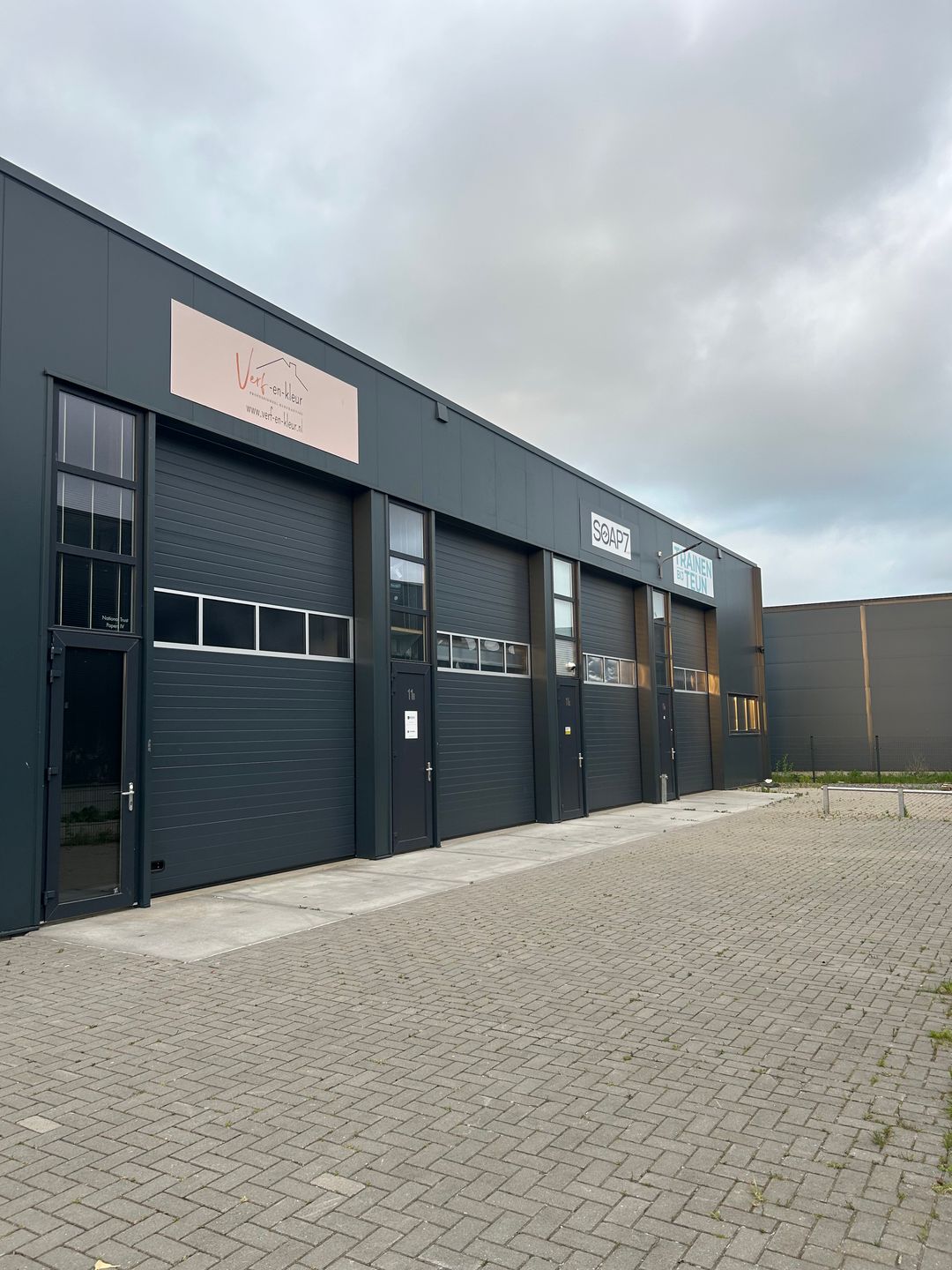 Het bedrijfspand bevindt zich in een heel gezellig "ondernemersstraatje".