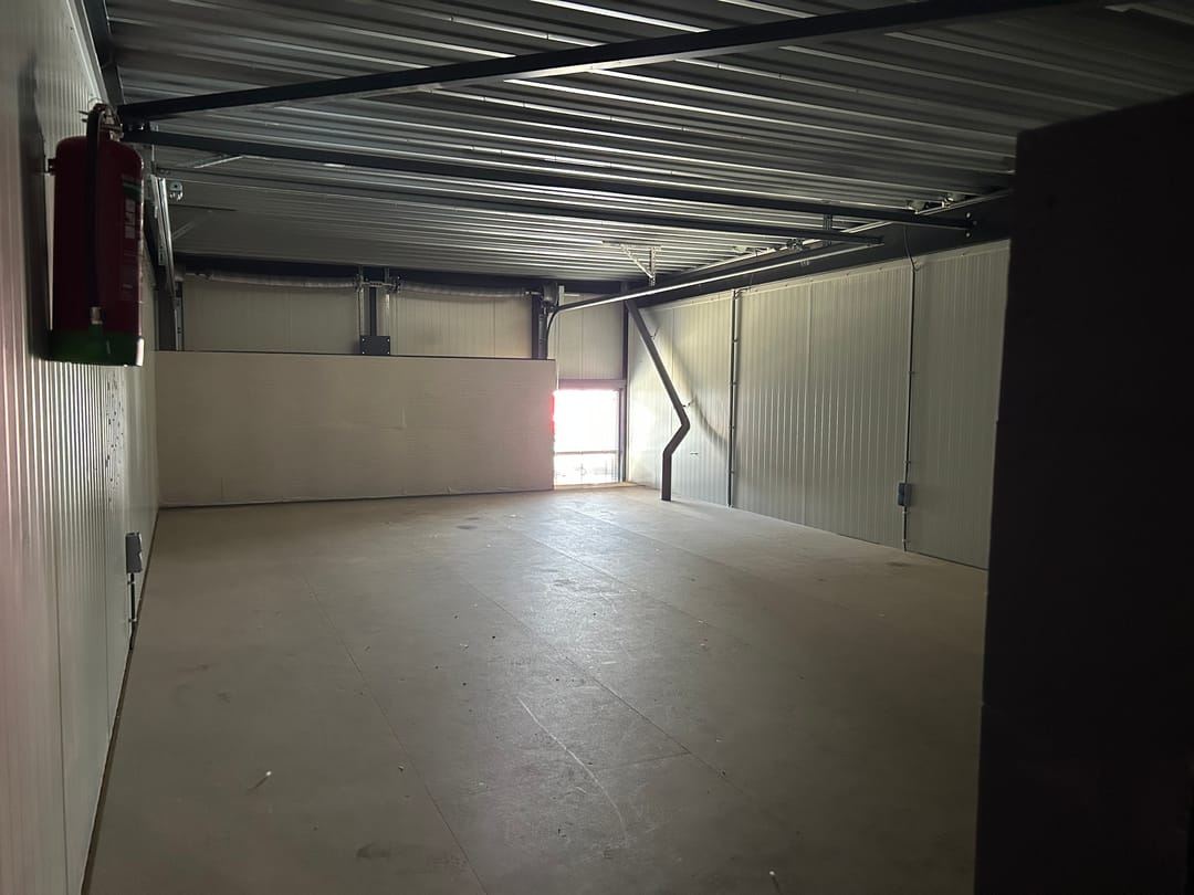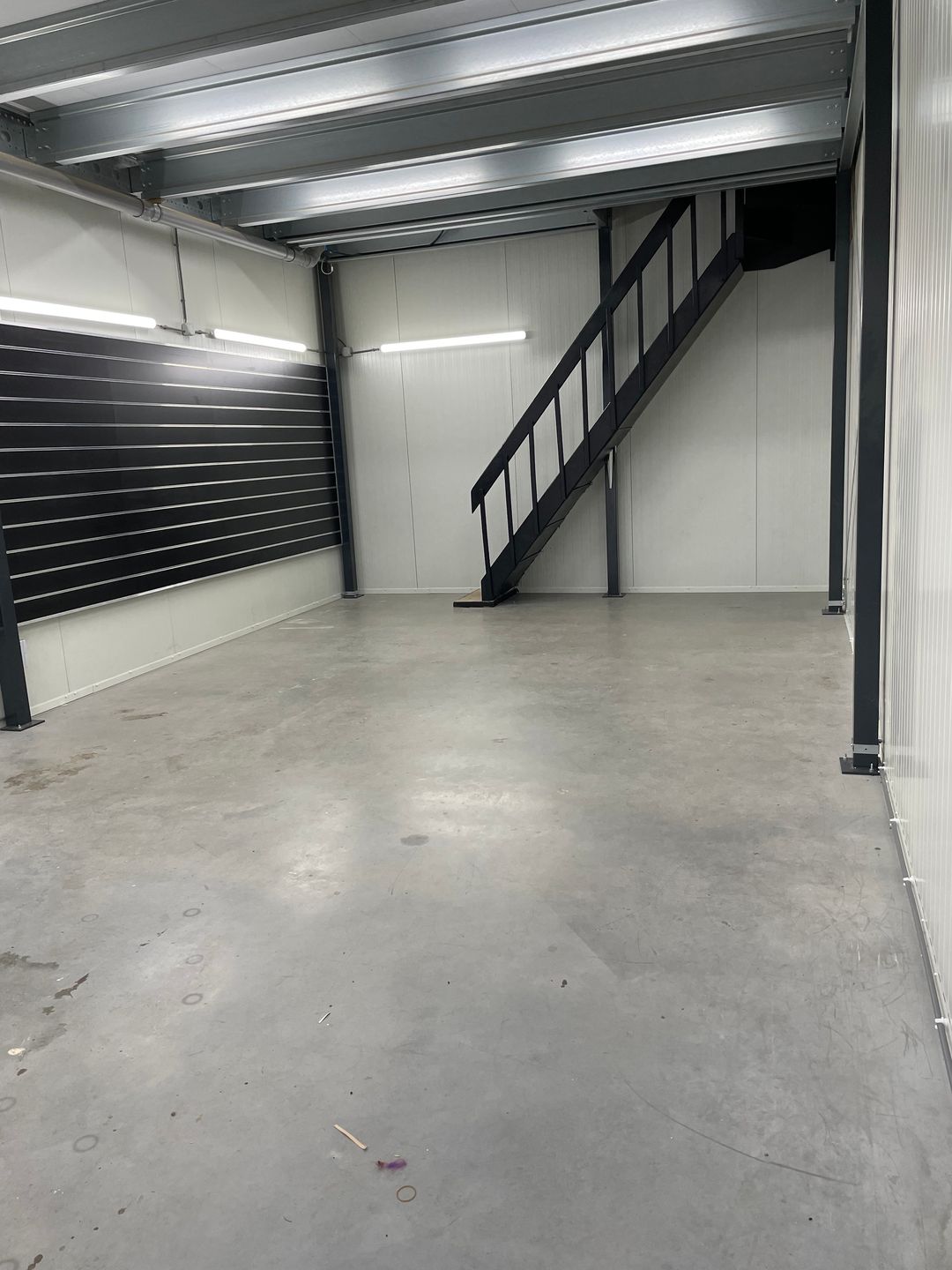 - Overheaddeuren, betonvloer, toilet en pantry