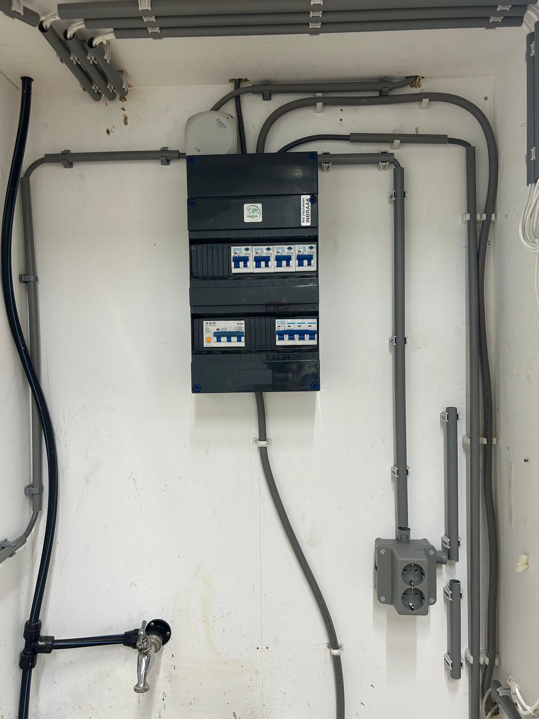 In de bedrijfsunit wordt een meterkast aangebracht, geheel volgens de geldende eisen van de nutsbedrijven. In de meterkast worden voor het storten van de betonvloer invoerbochten aangebracht.