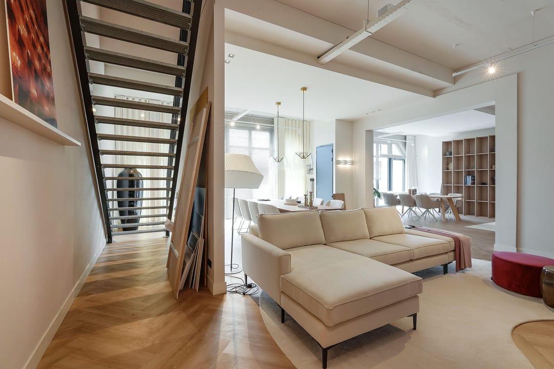 - stalen trap van begane grond naar de eerste verdieping, vurenhouten trap van de eerste naar tweede verdieping