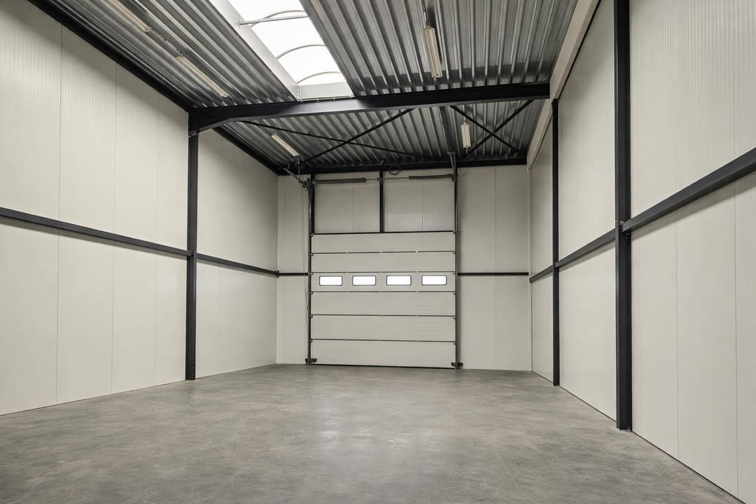 - Lichtstraten, overheaddeuren, betonvloer, toilet en pantry