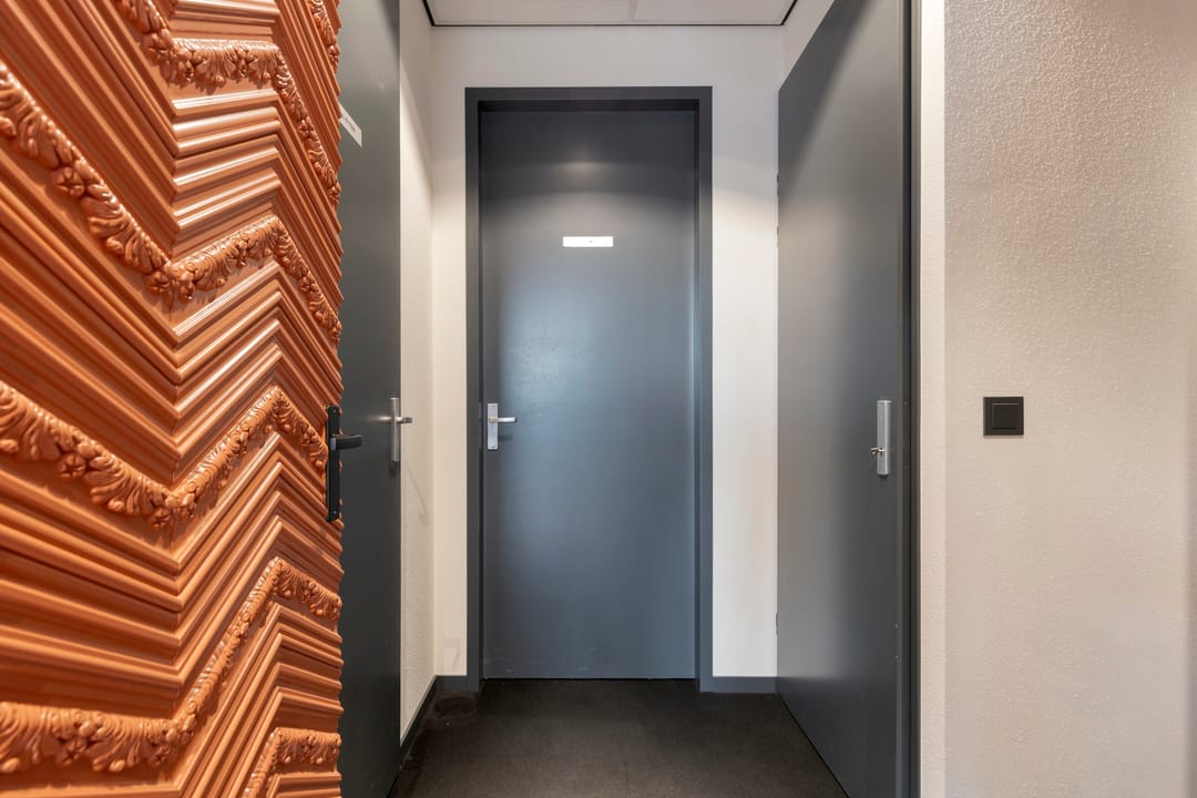 Technische ruimte met unit cv, toegang tot pantry/ kantine en toegang tot toiletgroep.