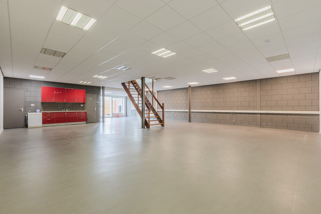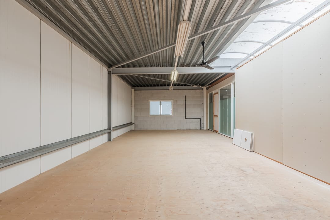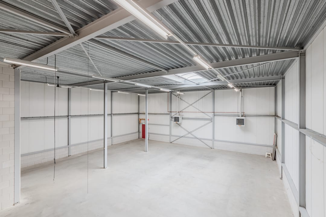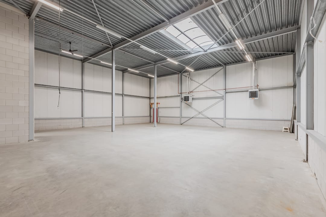 - Lichtstraten, overheaddeuren, krachtstroom, betonvloer, heater, toilet, pantry, mechanische ventilatie en te openen ramen