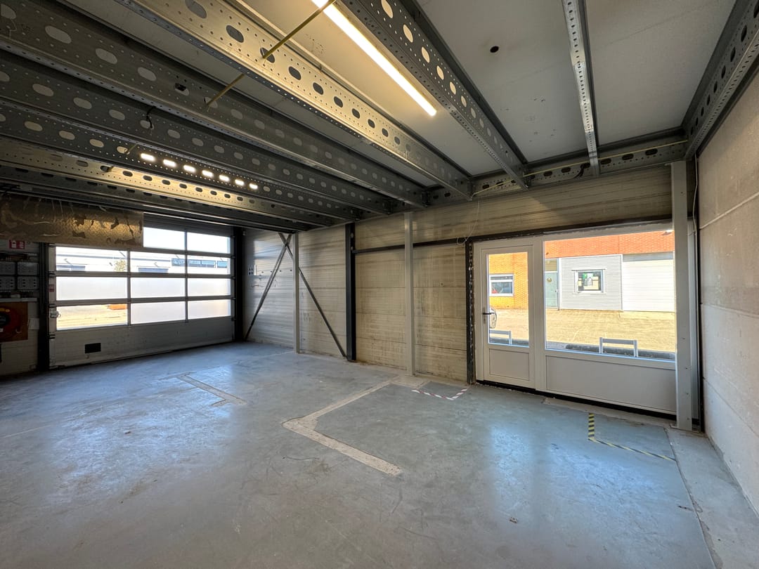 - Overheaddeuren, betonvloer, toilet, pantry en airconditioning