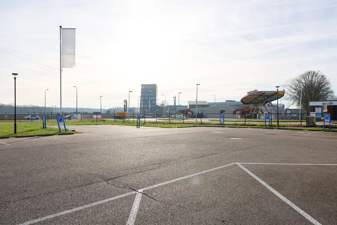 Het buitenterrein bestaat uit een parkeerterrein aan de buitenschil van de kantoren.