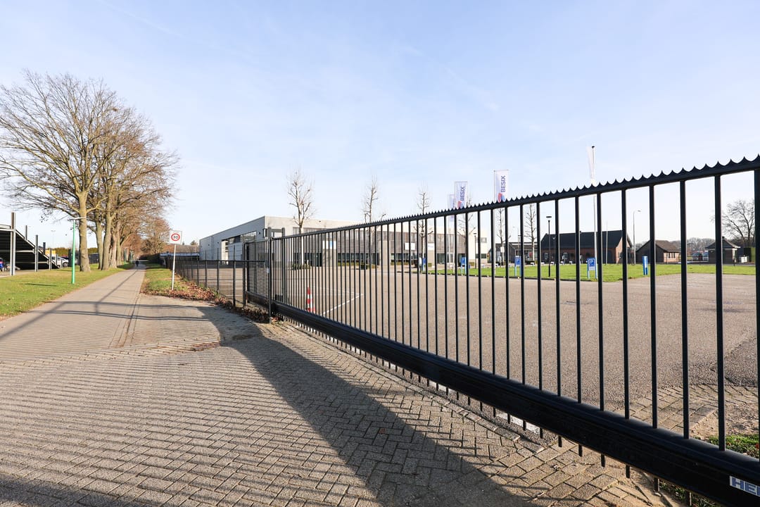 Het terrein is geasfalteerd en voorzien van hekwerk en een poort.