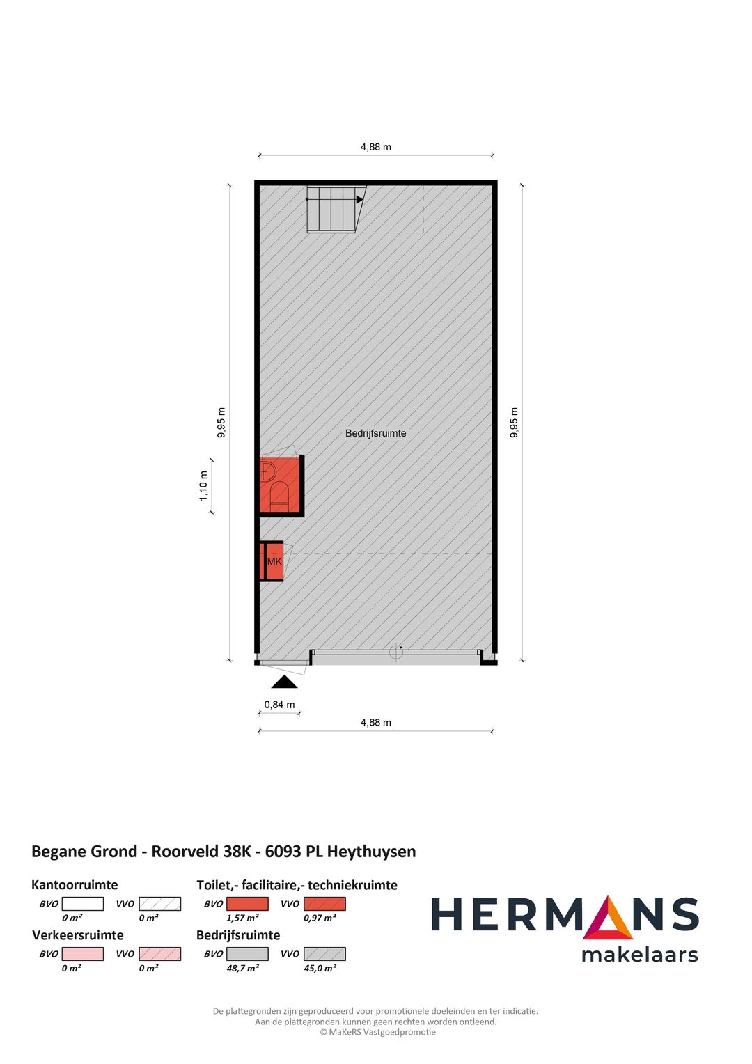 Te huur praktische bedrijfsruimte van ca. 81 m² verdeeld over twee verdiepingen aan Roorveld 38k te Heythuysen.