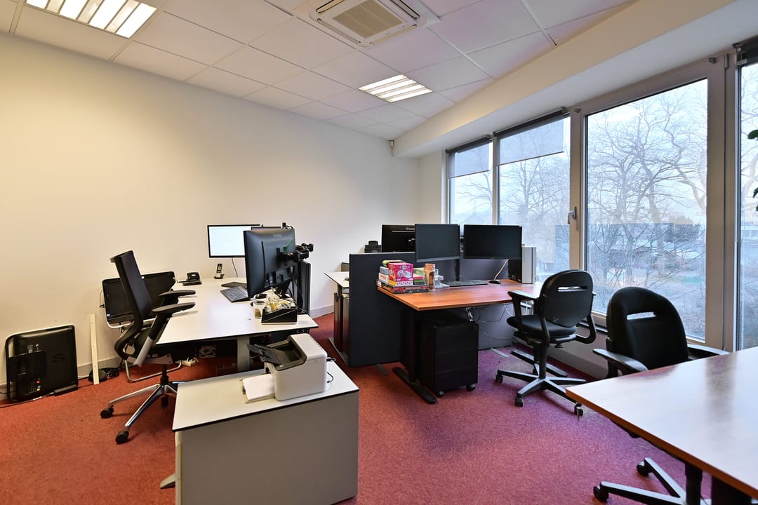 - Eerste verdieping: 100 m² kantoorruimte, inclusief twee afgesloten kantoorkamers met toilet en technische ruimte.
