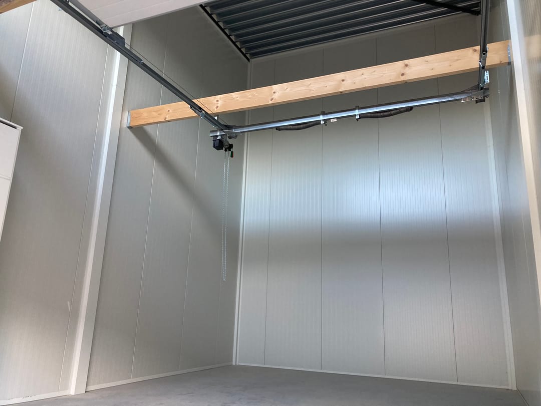 -elektrisch bedienbare overheaddeur (3,10 breed/3.30 hoog) met loopdeur ernaast