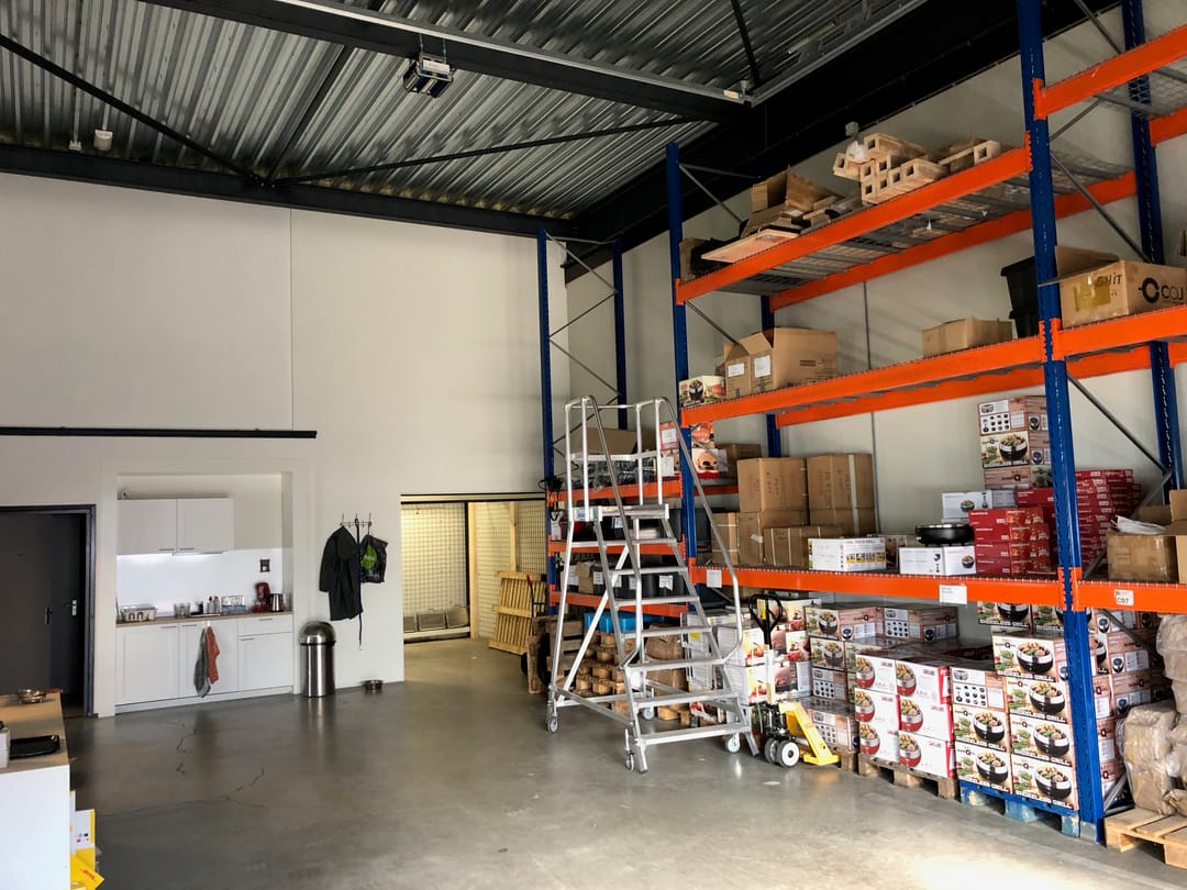 Een goed bereikbare en keurige opslagruimte met eigen entree en een grote overheaddeur van ca. 4x4m. De hoofdruimte is ca. 86m2 met een pantry en achterin een met elektrische garagedeur afsluitbare ruimte van 16m2. Deze ruimte zou kantoor of kantine kunnen worden. In verband met huurders van het kantoordeel kunnen hier geen zware lawaaige machines worden gebruikt. Perfect voor een webshop opslag, verzendlocatie, catering, opslag van goedere, camper(s), er is evt. mogelijkheid tot uitbreiding door een vloer aan te brengen. Er is een gezamenlijke ruimte met 2 toiletten.