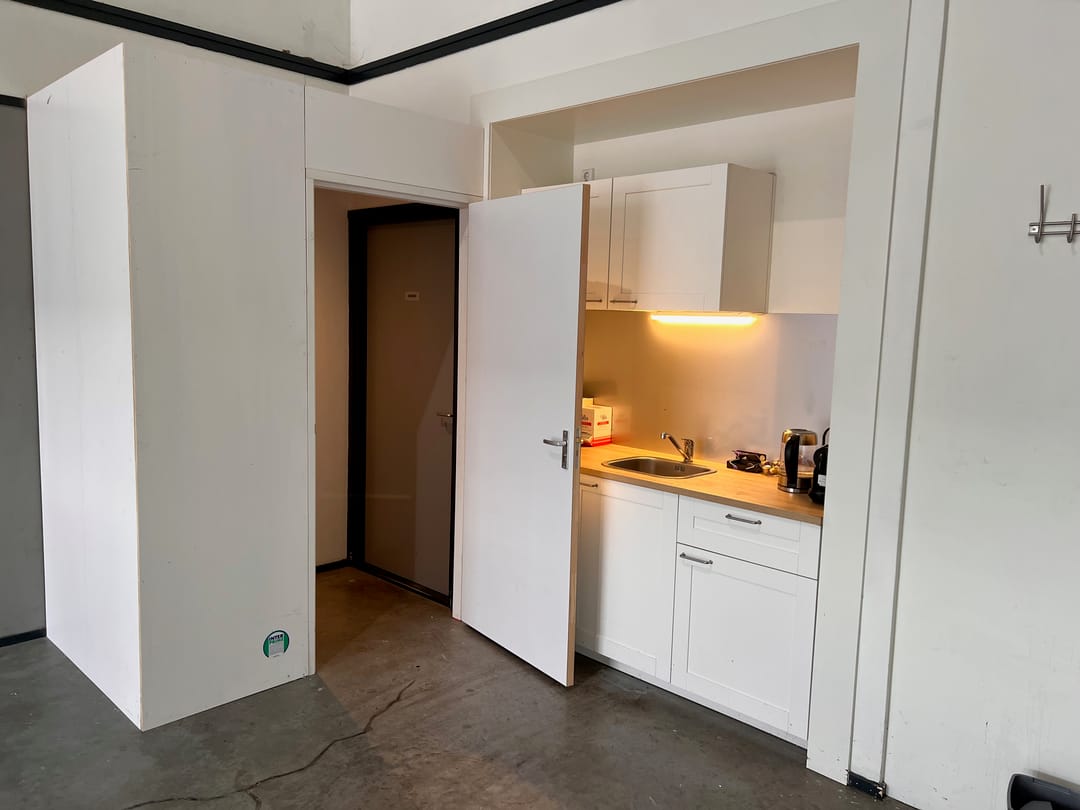 De ruimte zal schoon worden opgeleverd met goed werkende overheaddeur, deur voor entree en een “interne” elektrische garagedeur. Er is een kleine nette pantry met warm en koud water. De ruimte heeft een eigen meter. Indien wenselijk dan kan overleg kan verwarming worden aangelegd. Er is een brandmelder en brandblusser aanwezig.