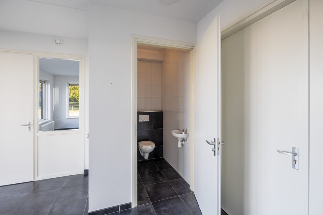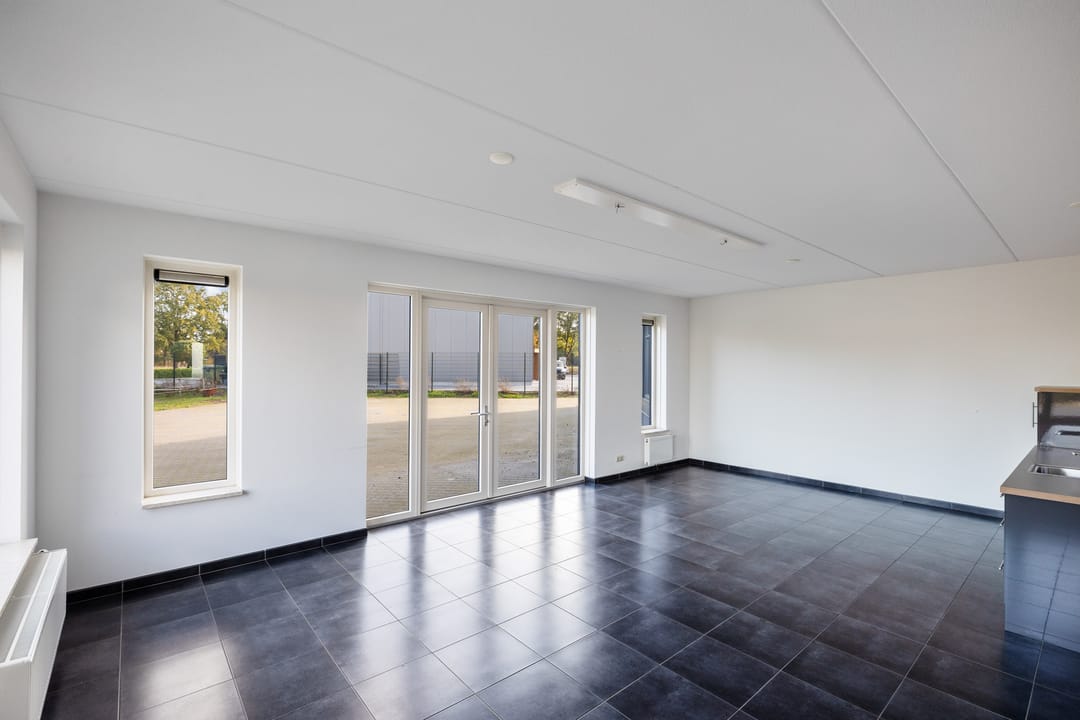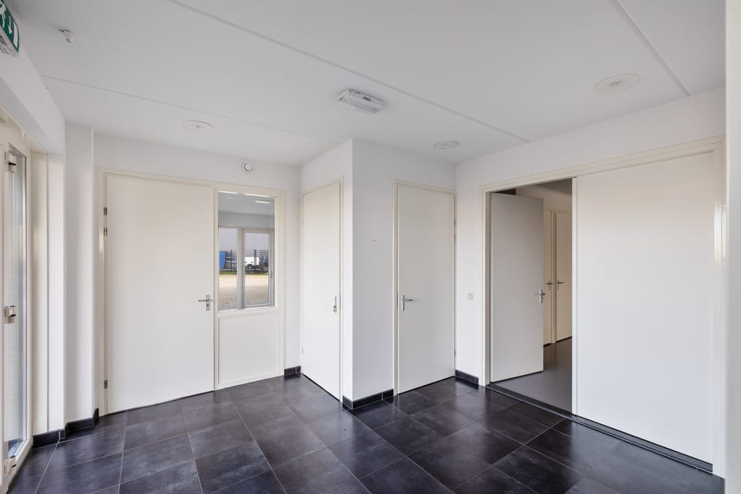 Representatieve entree/hal, kantoor- en spreekruimte, kantine met pantry, twee toiletgroepen en toegang tot de bedrijfshal.