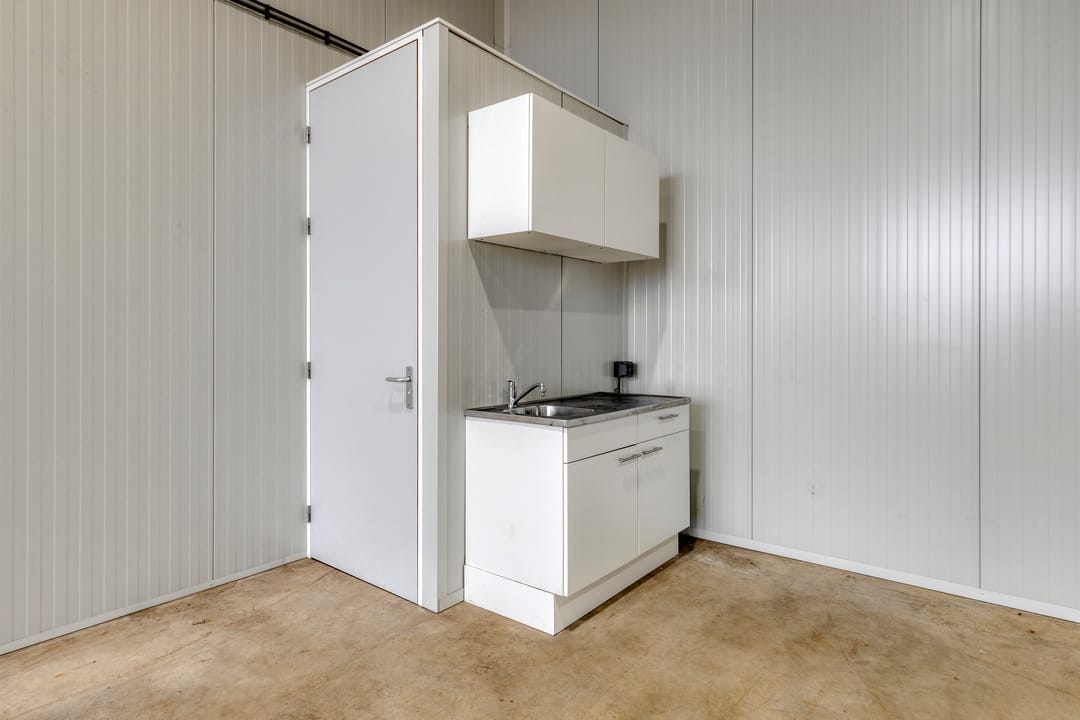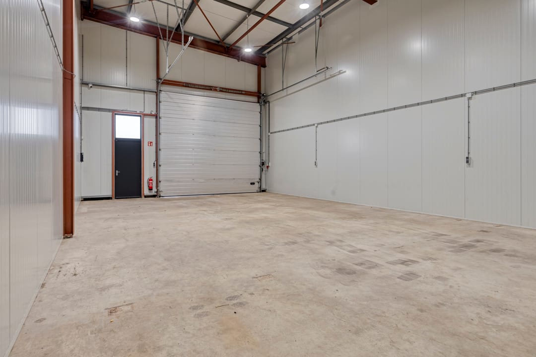 Het betreft een bedrijfsunit met een betonnen begane vloer van ca. 113 m2 VVO. De unit is toegankelijk middels een elektrische overheaddeur (b x h 4,92m x 4,50 m) met separate loopdeur en heeft een ideale vrije hoogte van ca. 6,8 meter. De unit is verder voorzien van krachtstroom, wateraansluiting, LED-verlichting, glasvezelverbinding en camerabewaking. Ook is een toiletruimte en een pantry met close-in-boiler aanwezig.