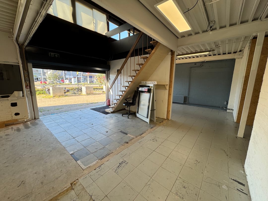 Eigen entree, bedrijfsruimte (ca. 310 m², hoogte ca. 3 m), open trap naar verdieping.