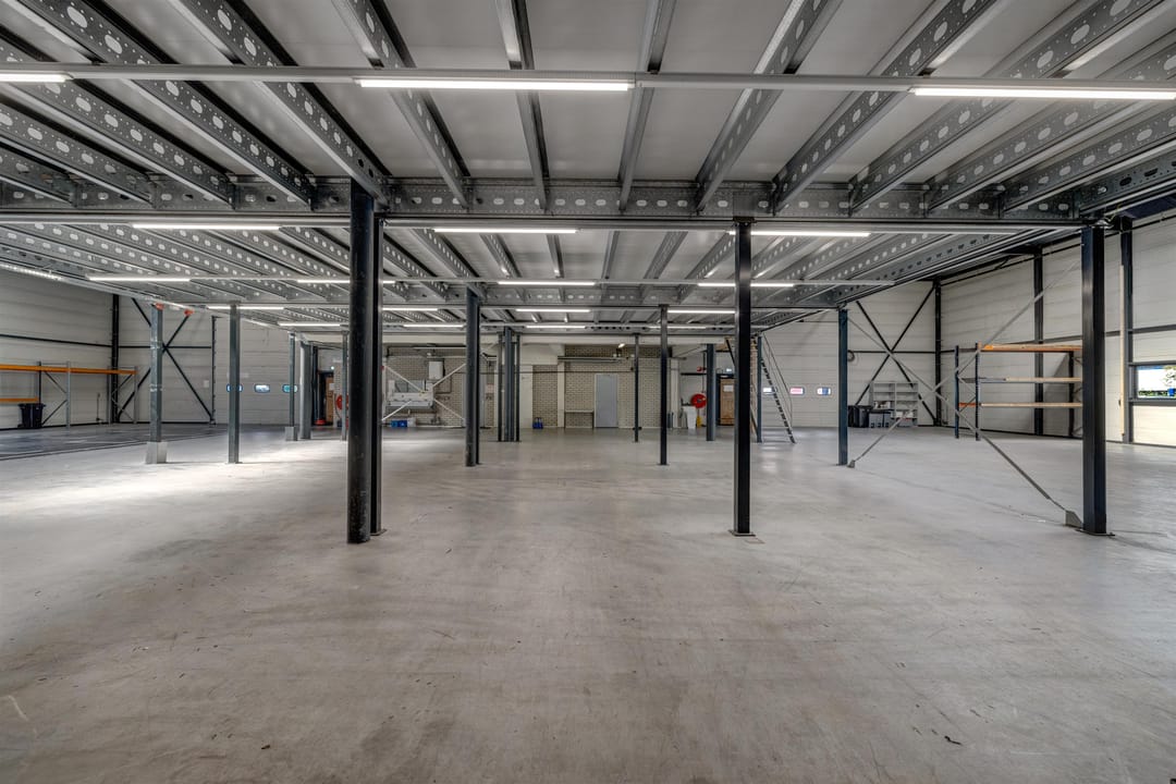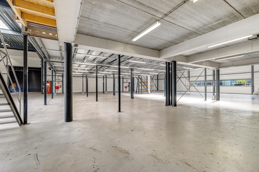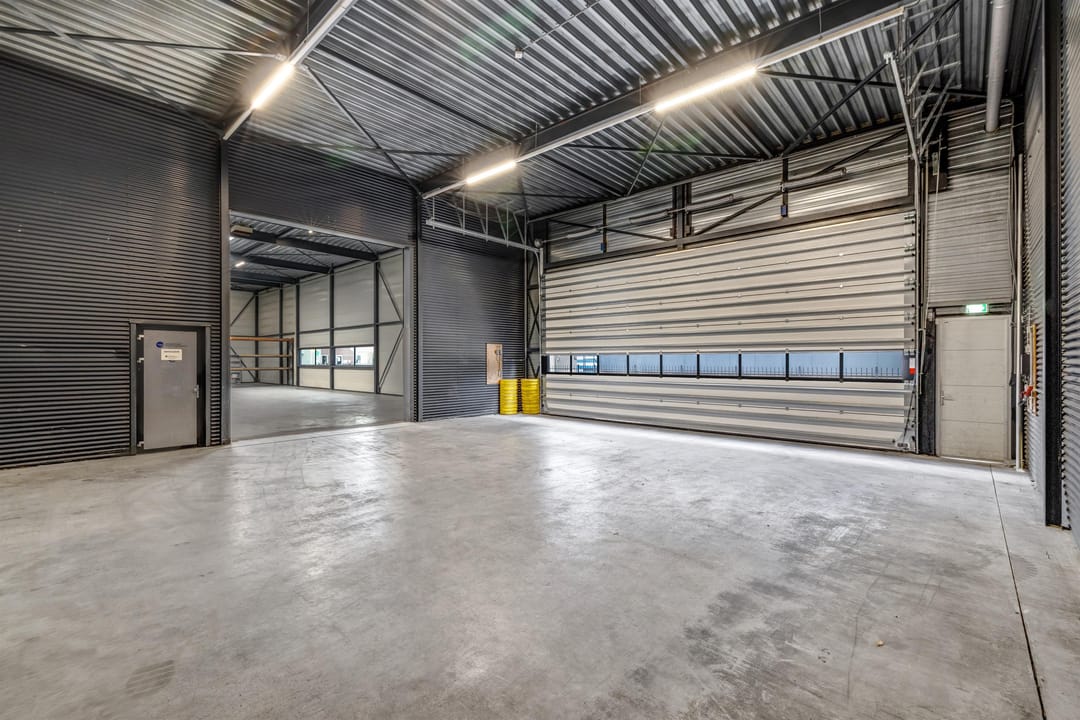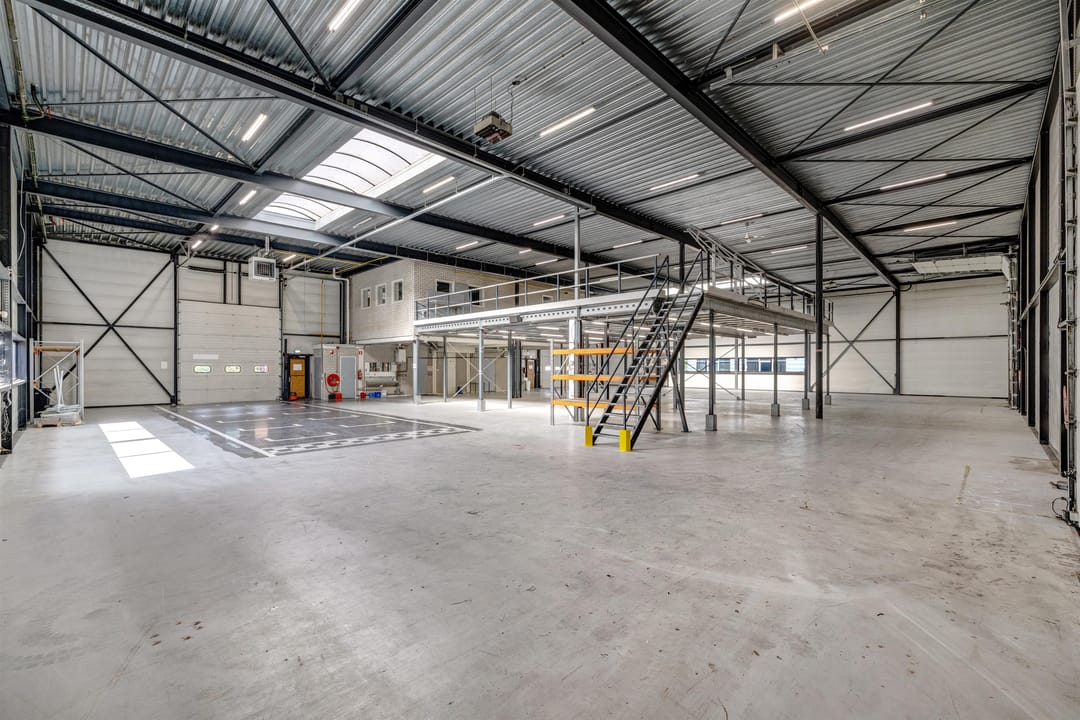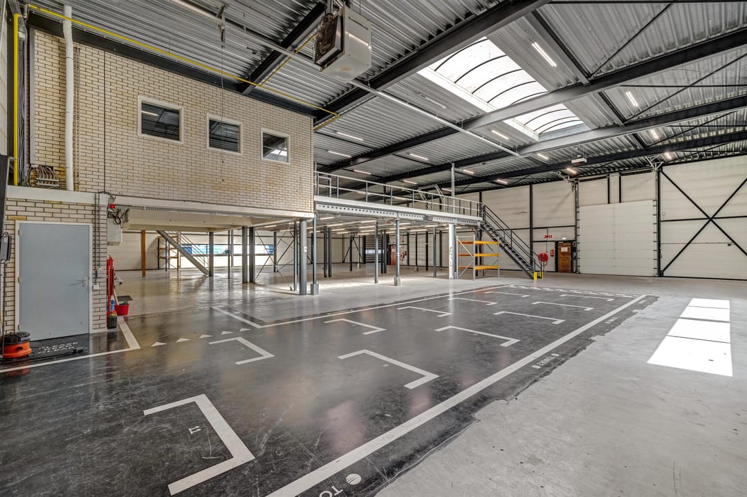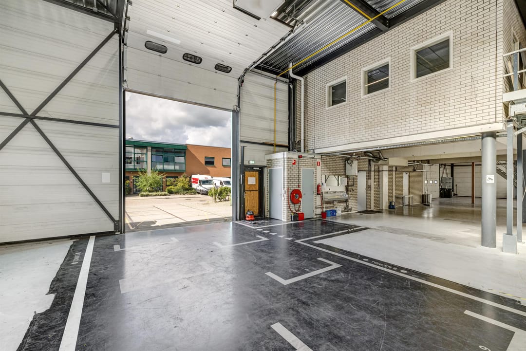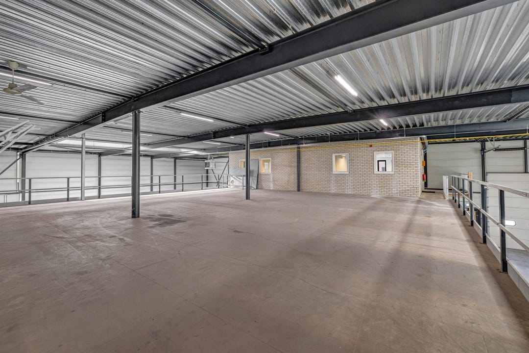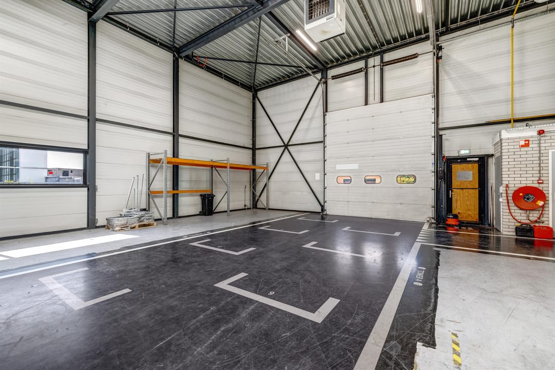 - Lichtstraten, overheaddeuren, betonvloer, heater, toilet, pantry, airconditioning, mechanische ventilatie en te openen ramen
