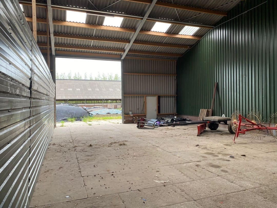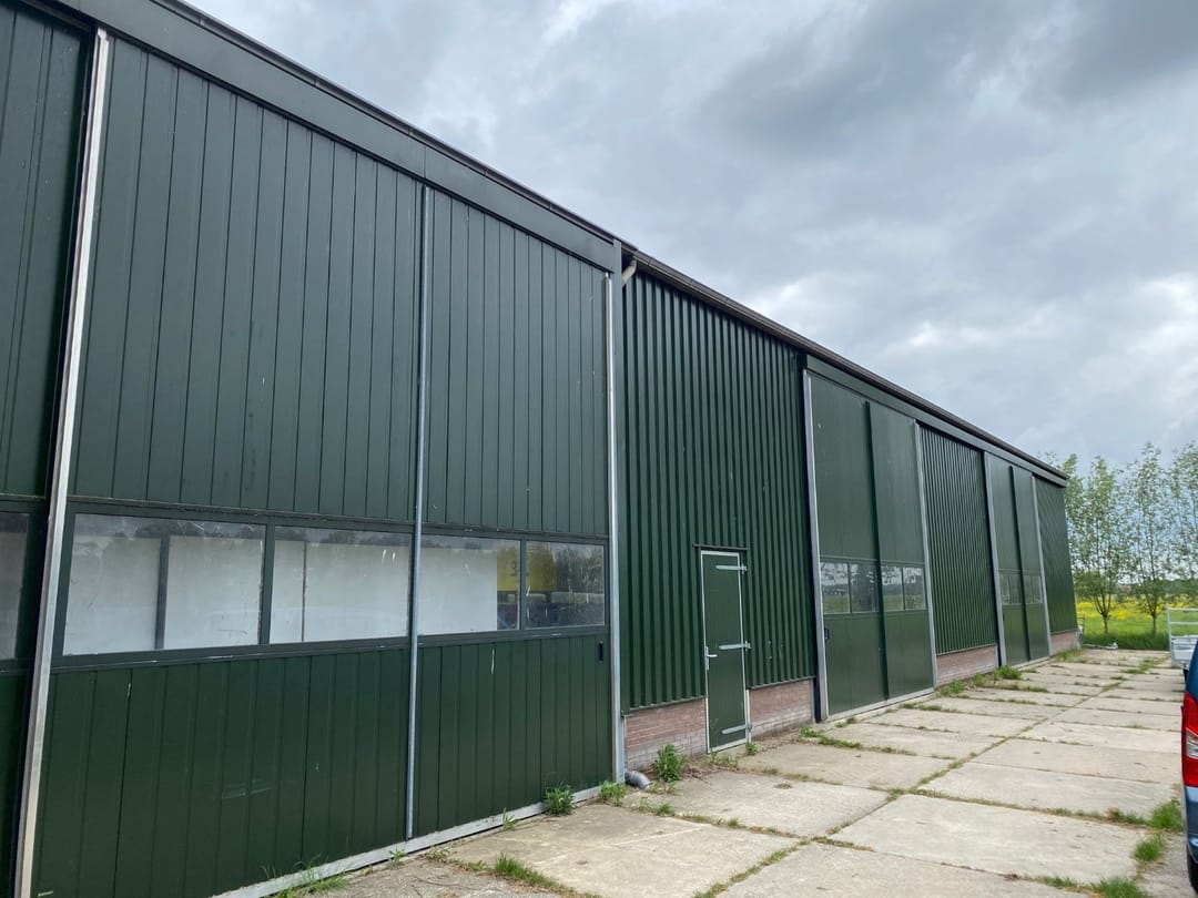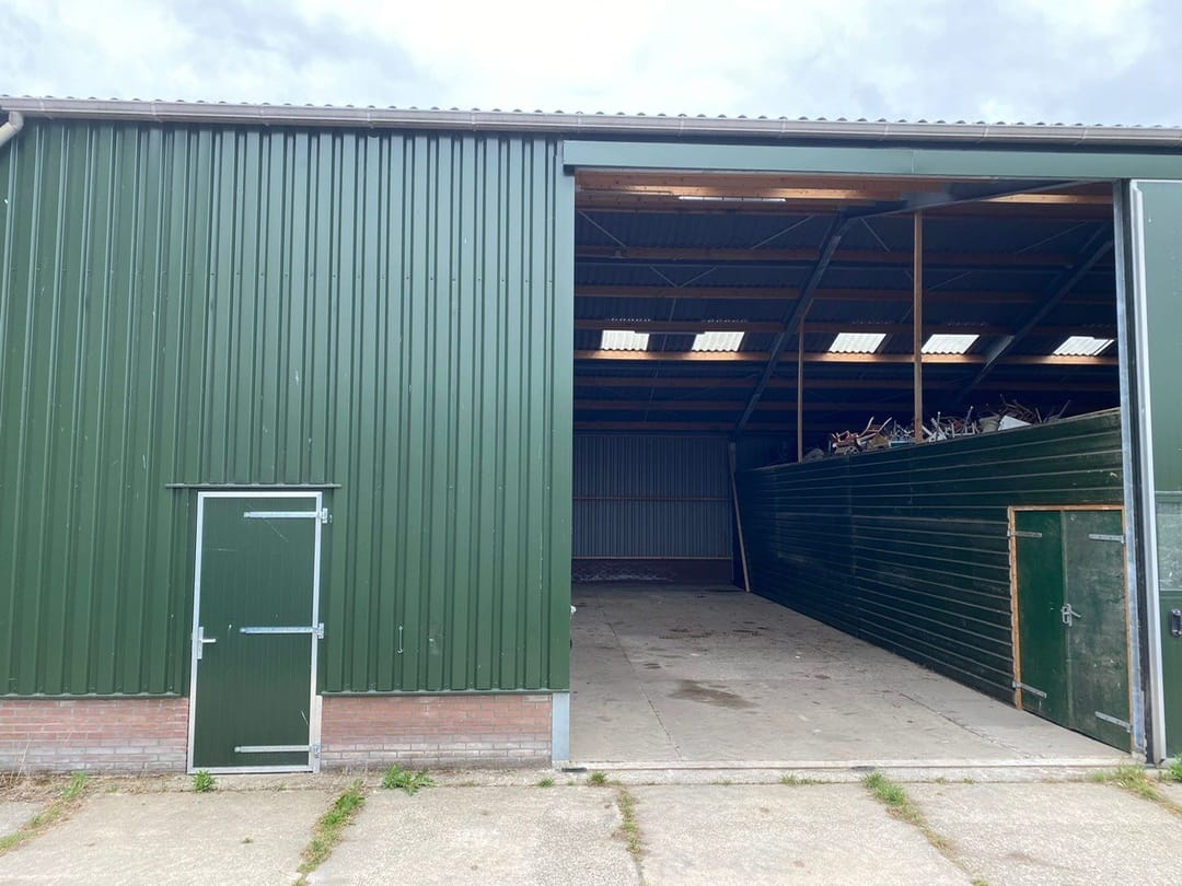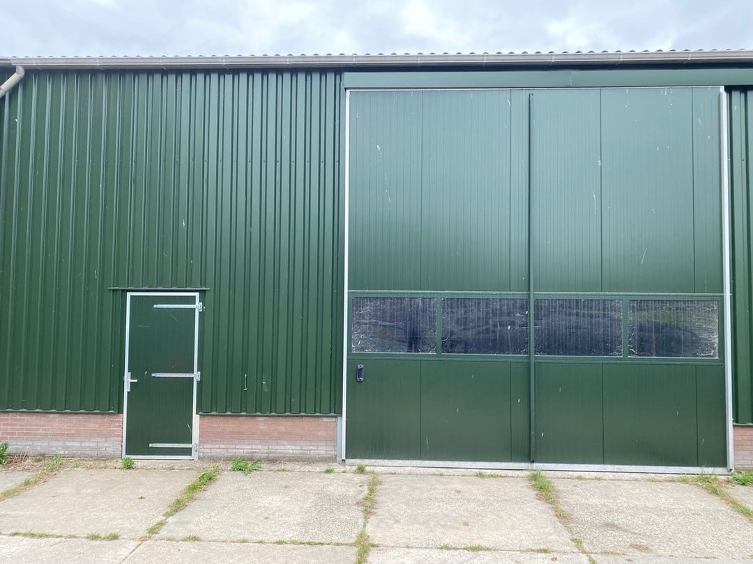 • Aan de voorzijde een loopdeur en een schuifdeur 5 x 5 m. (inrijhoogte ca. 5 m)