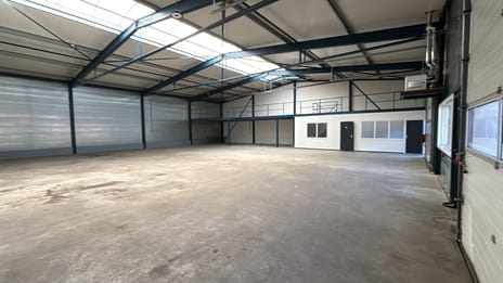 Het pand is volledig geïsoleerd en het dak is voorzien van een geïsoleerde royale lichtstraat en een elektrisch bedienbare overhead-deur aan de achterzijde van het pand. Naast de overheaddeur zit een dag-deur.