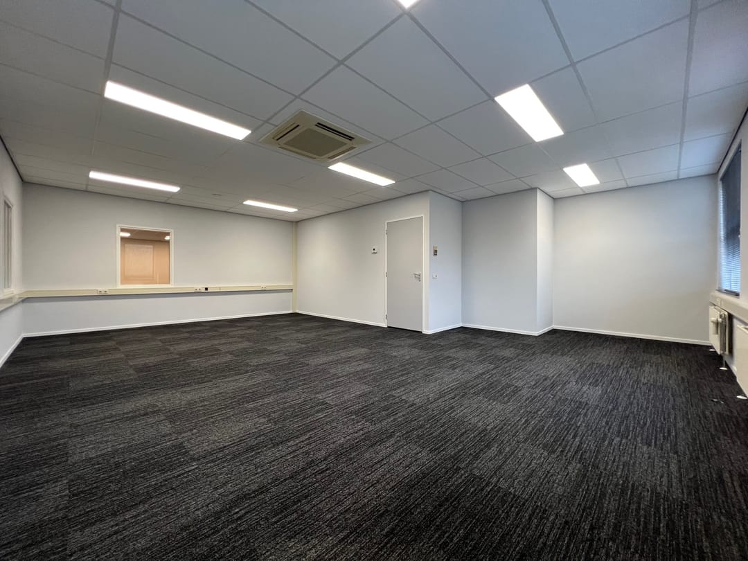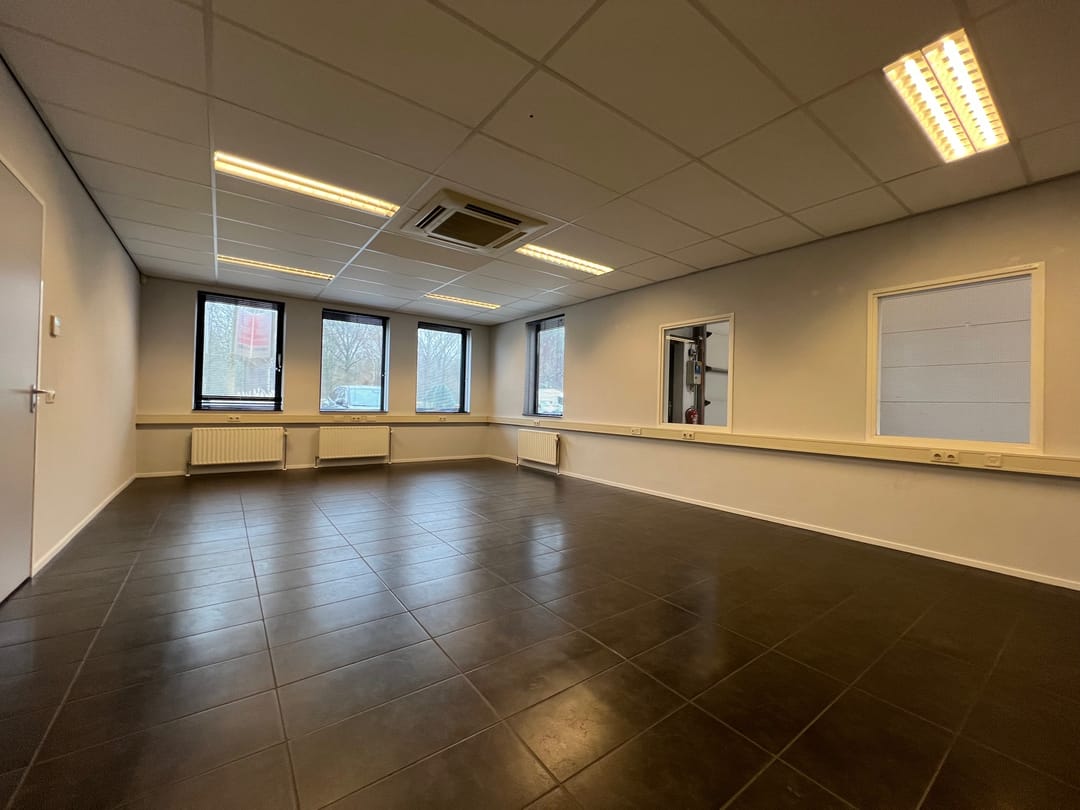Het object omvat ca. 125 m² kantoorruimte verdeeld over twee bouwlagen en ca. 285 m² bedrijfsruimte. In de bedrijfsruimte bevindt zich een entresolvloer van ca. 121 m², waarop drie nette kantoor-/spreekkamers zijn gerealiseerd. Deze zijn voorzien van tapijt, gesausde wanden, systeemplafonds, verwarming, airconditioning en indirect daglicht.