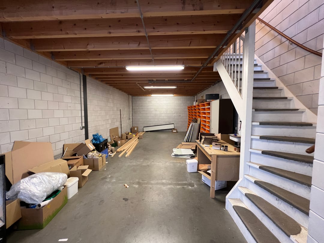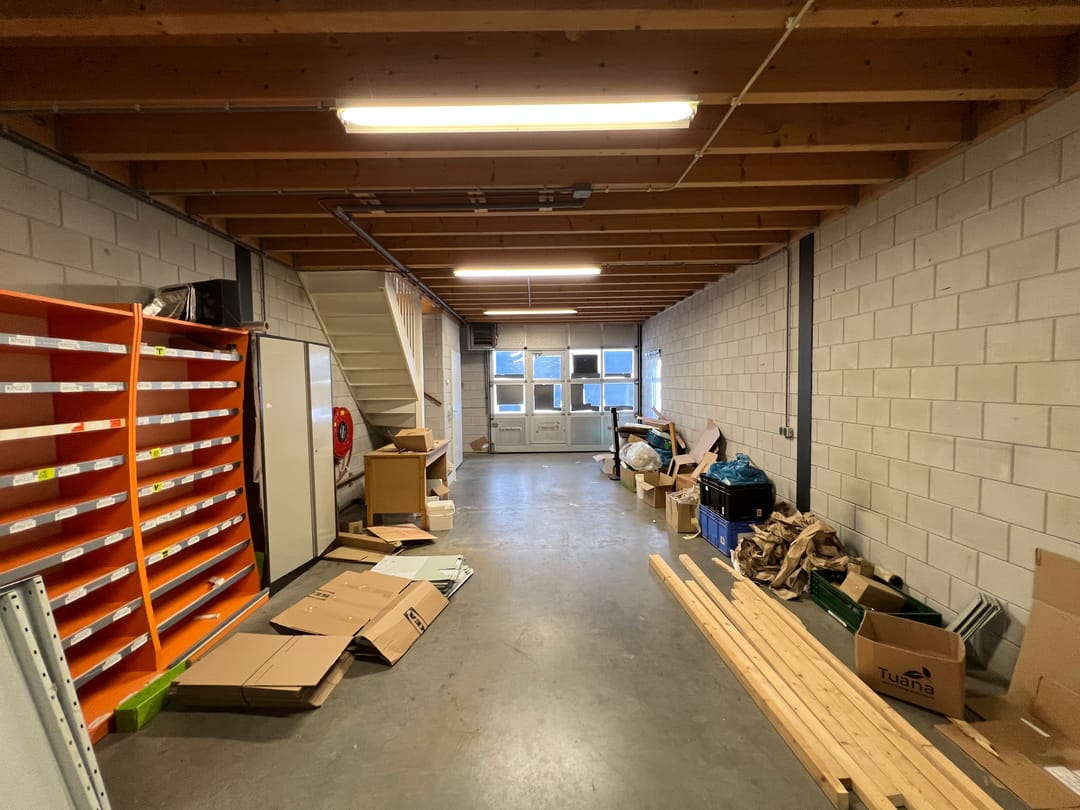 - Overheaddeuren, betonvloer, heater, toilet en pantry