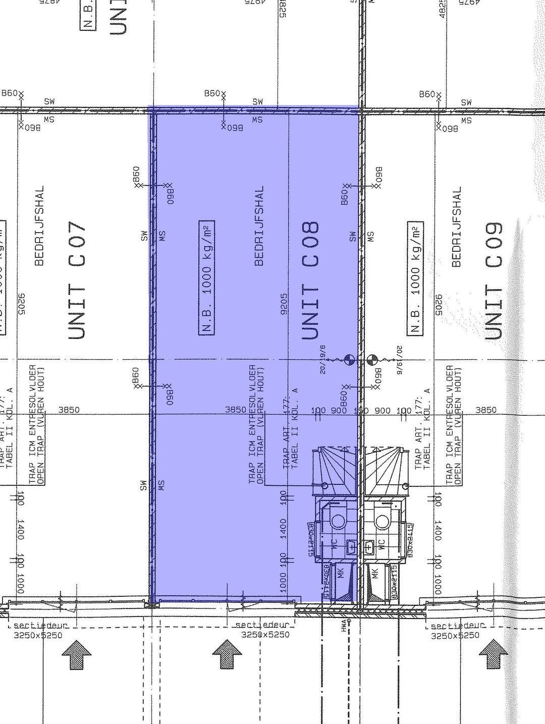- monoliet afgewerkte betonvloer, maximale vloerbelasting 1.000 kg/m²;