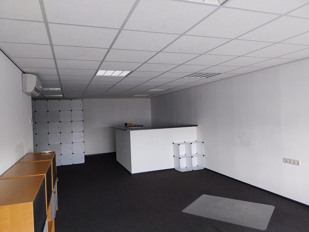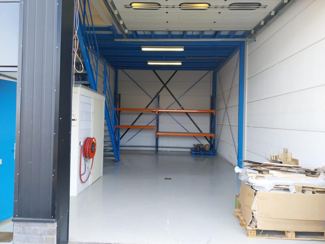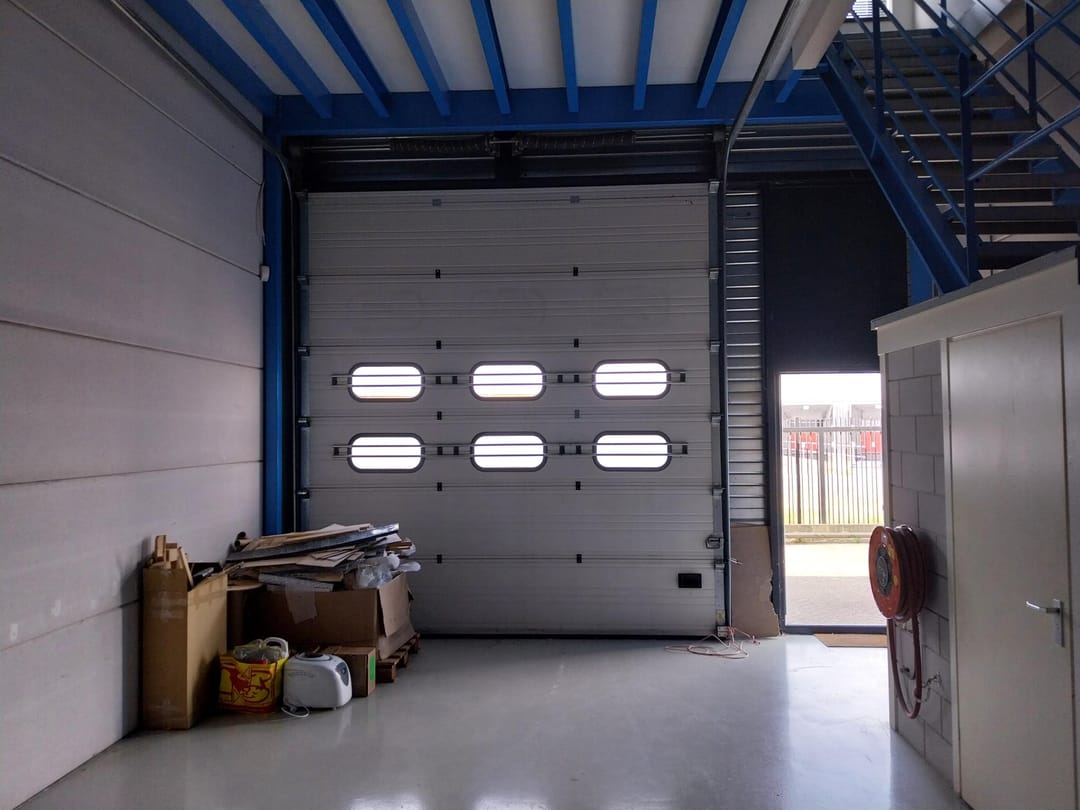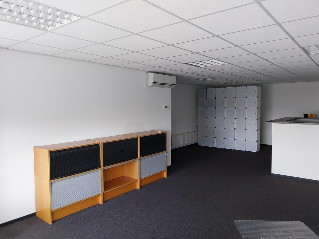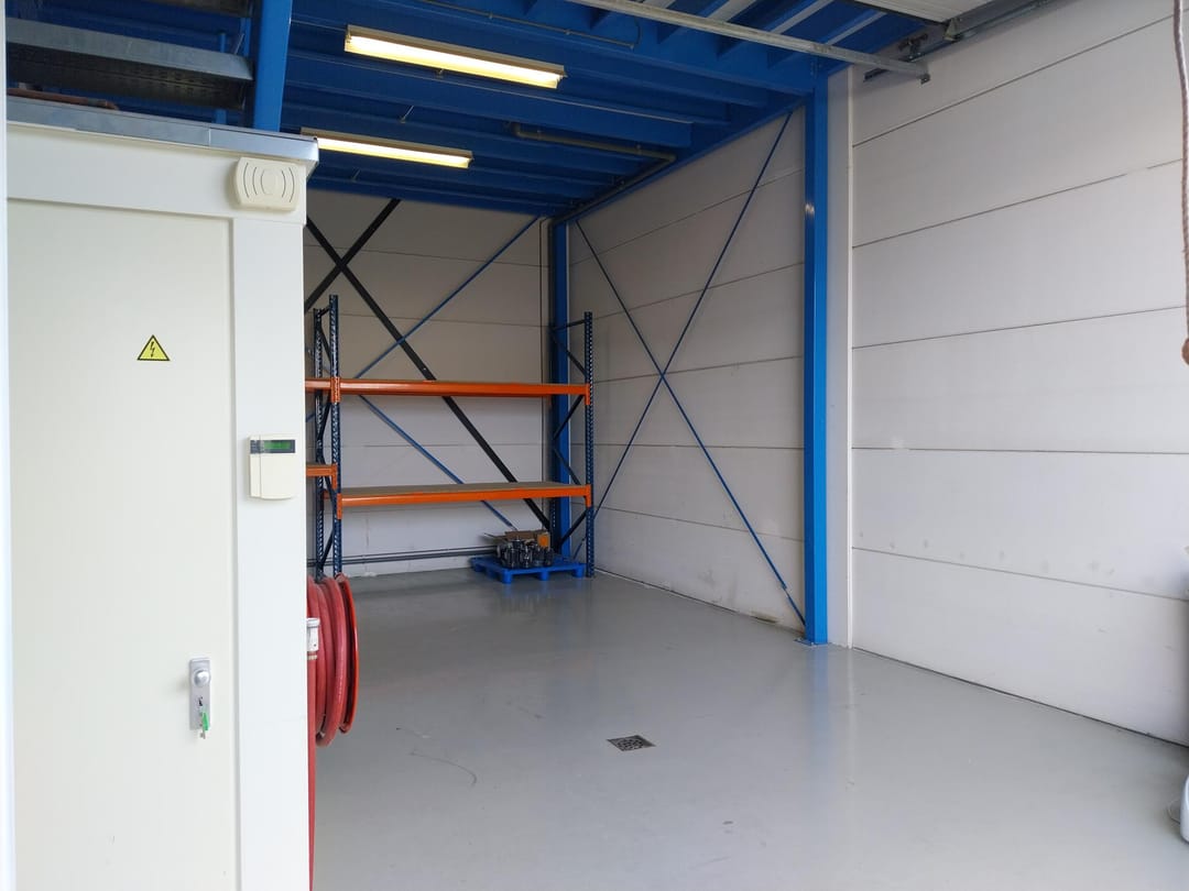 - Airconditioning, overheaddeuren, krachtstroom, betonvloer, toilet, pantry, inbouwarmaturen en te openen ramen