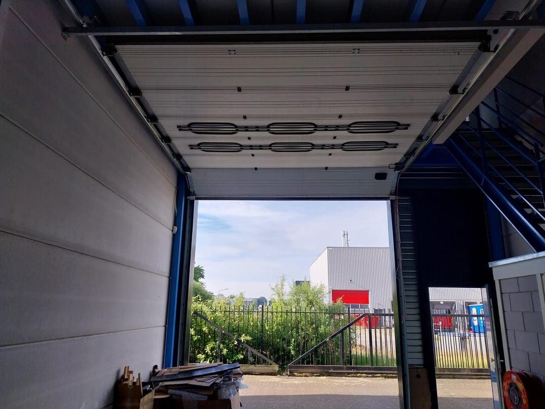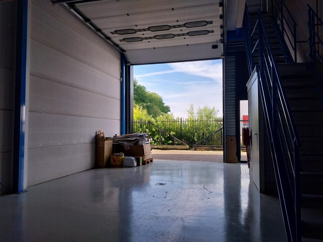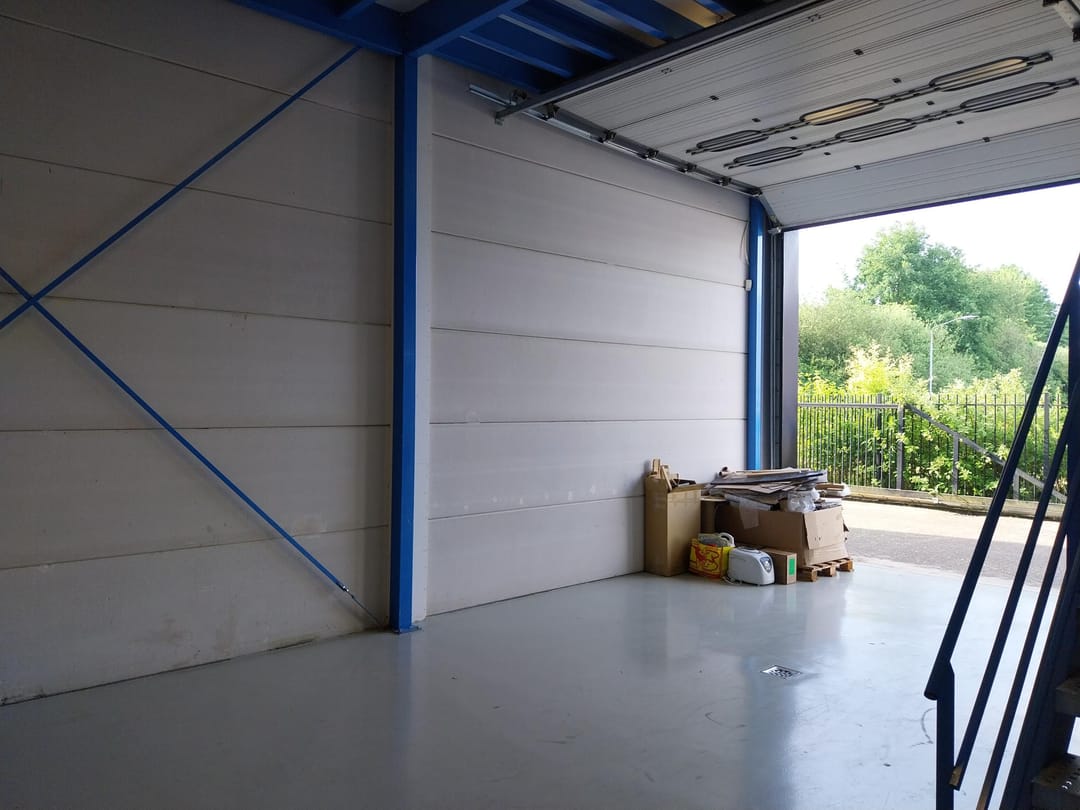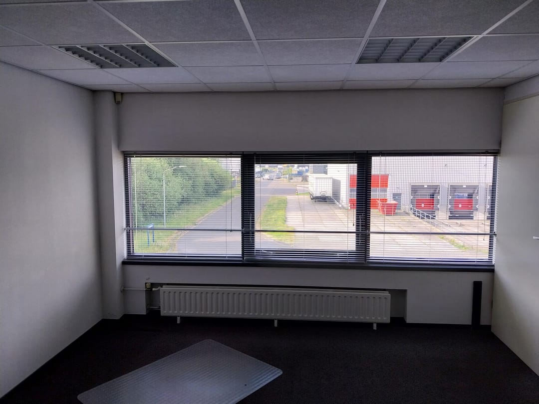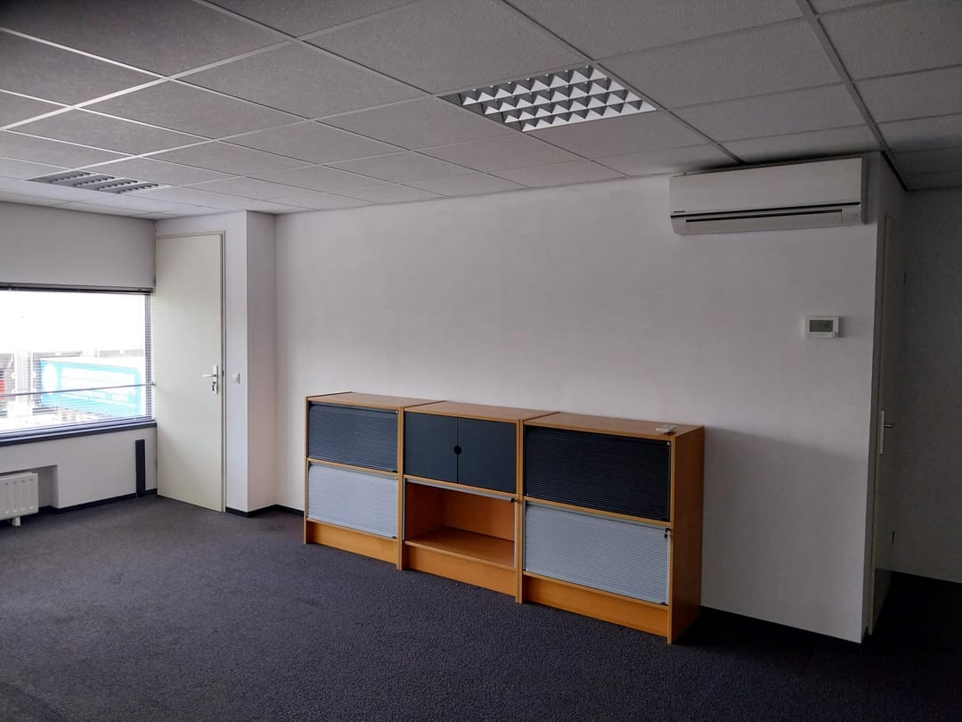 - Airconditioning, overheaddeuren, krachtstroom, betonvloer, toilet, pantry, inbouwarmaturen en te openen ramen