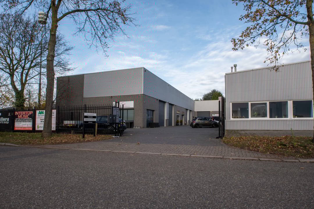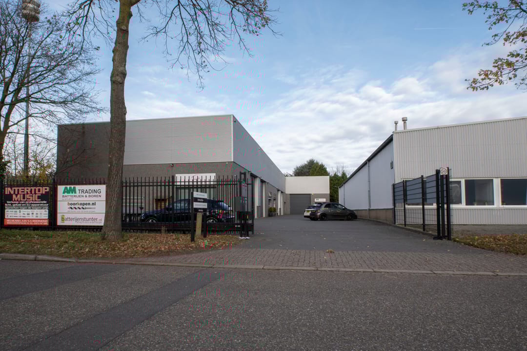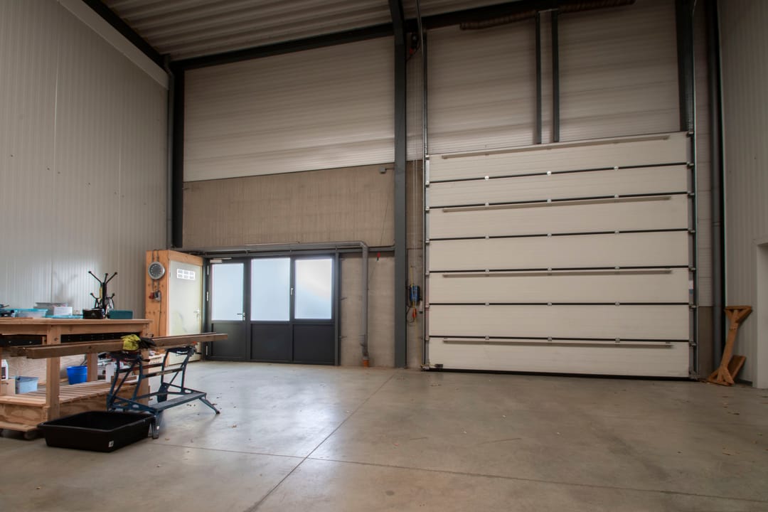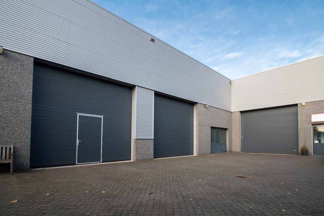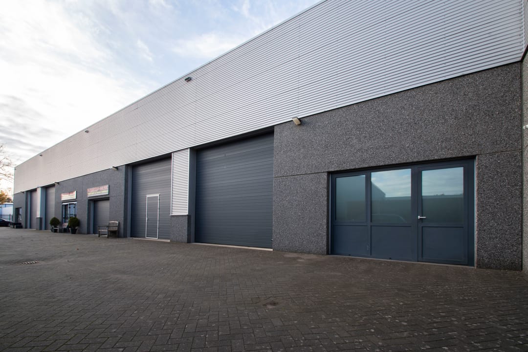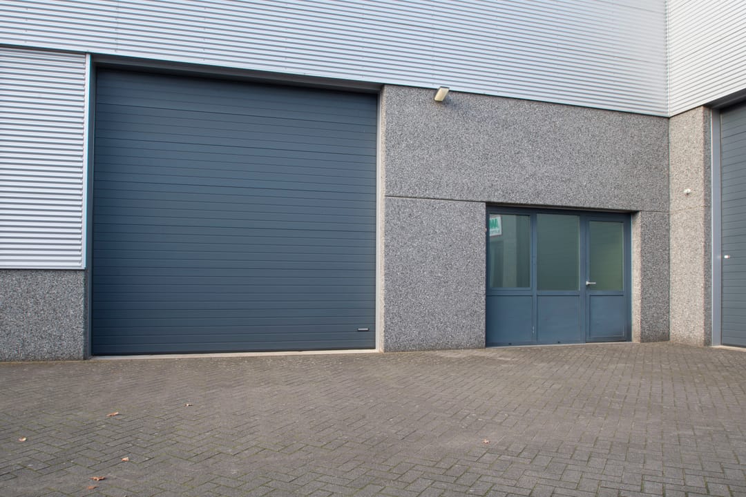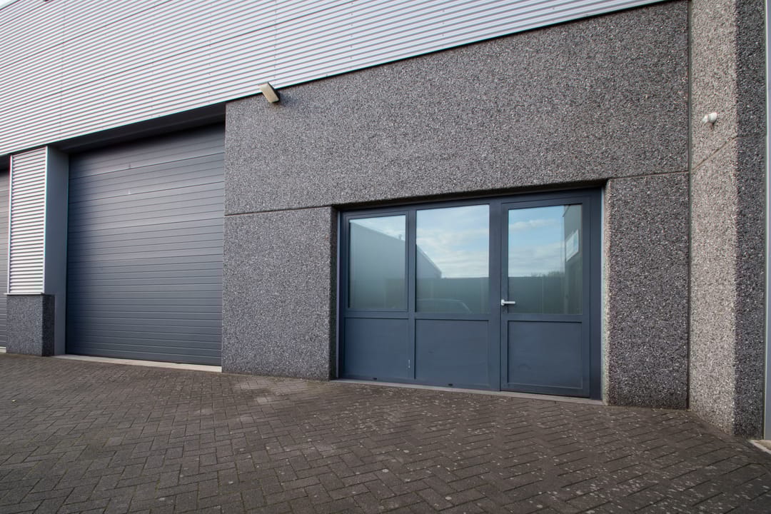 Het object beschikt aan de voorzijde over een grote sectionaal poort met ernaast een pui met aparte entreedeur.