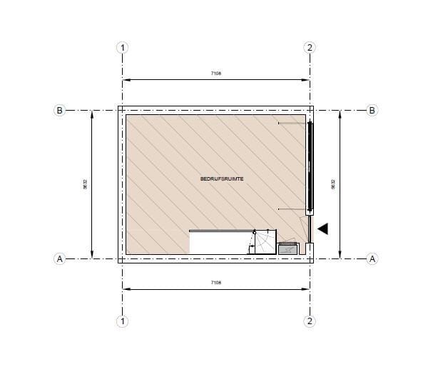 The first floor has a concrete floor with a maximum load of 1,000 kg/m2. Also located here is the toilet, which is equipped with a beautiful herringbone floor and a wash basin.