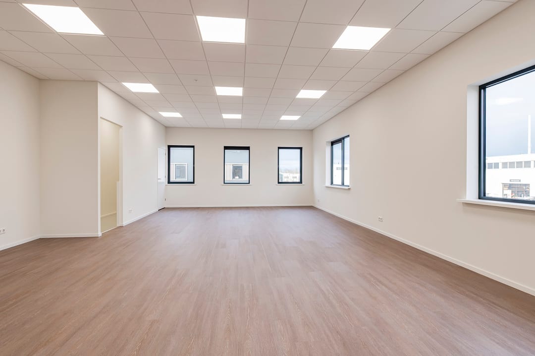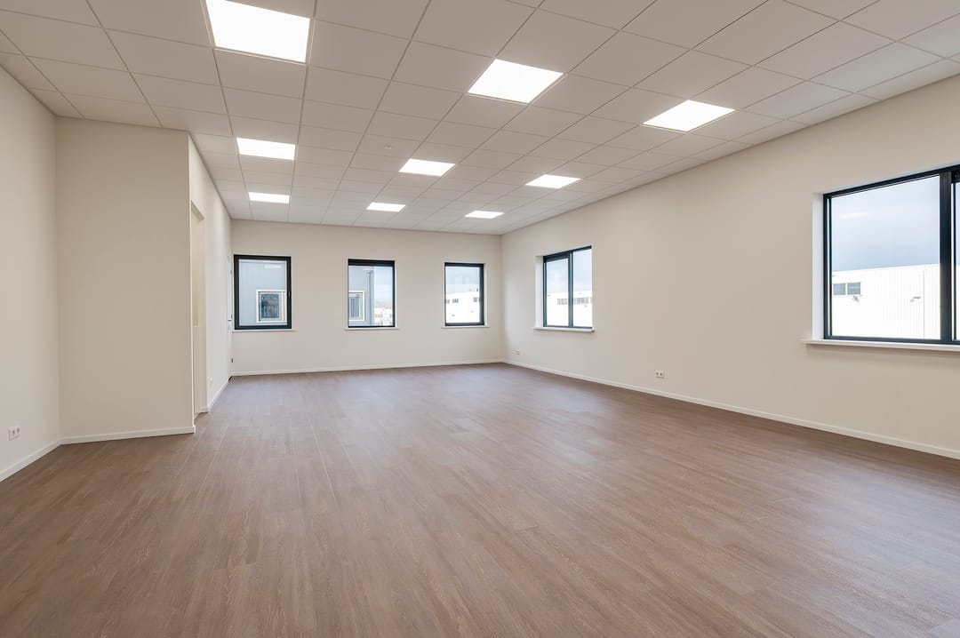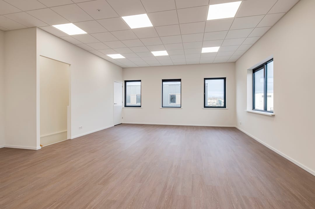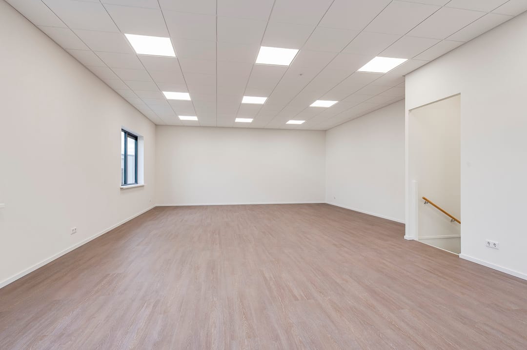 Op de eerste verdieping bevindt zich een lichte en open kantoorruimte die instapklaar is afgewerkt. De ruimte is uitgevoerd met een systeemplafond voorzien van LED-verlichting, een onderhoudsarme pvc-vloer en meerdere zijramen. Daarnaast is er een praktische bergkast aanwezig en biedt de open indeling alle vrijheid om de kantoorruimte naar eigen inzicht te organiseren. Verwarming en koeling in het kantoor geschiedt middels een airco installatie.