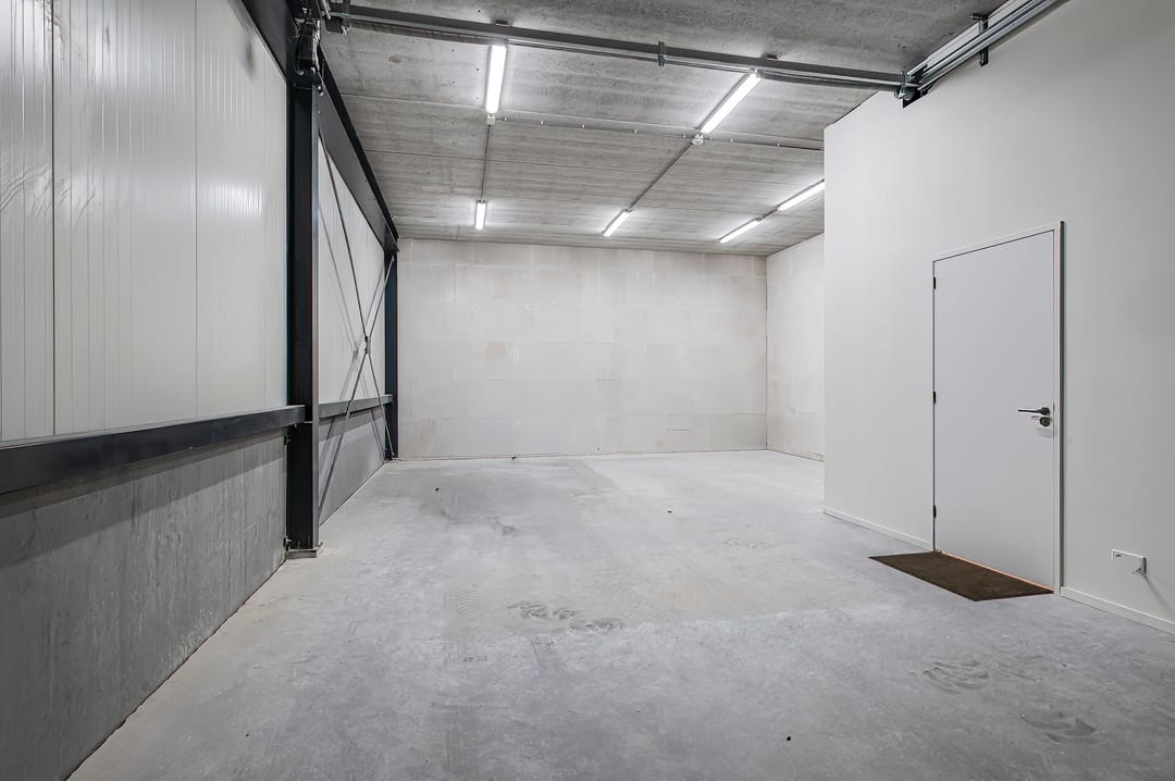 - Overheaddeuren, betonvloer, toilet, pantry, airconditioning, inbouwarmaturen en te openen ramen