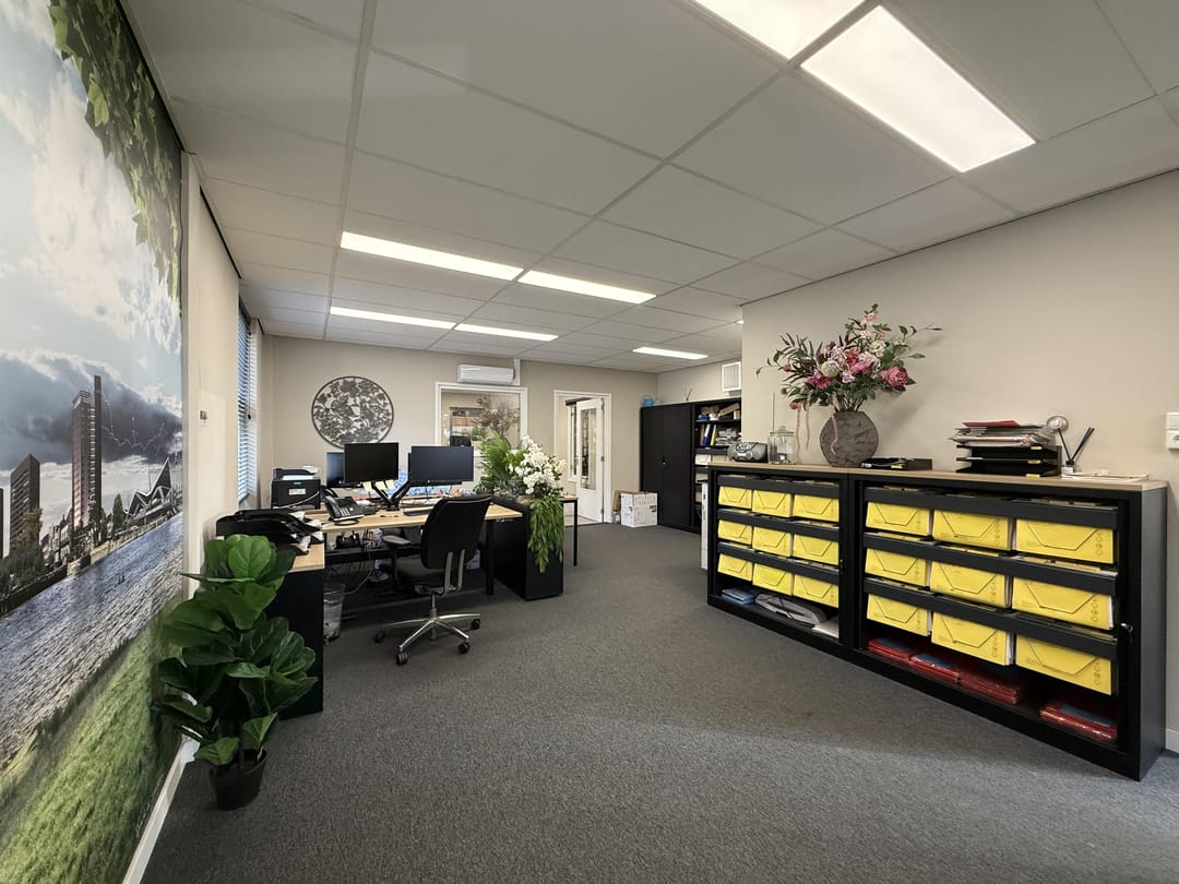 - 130m2 kantoorruimte verdeeld over begane grond en verdieping.