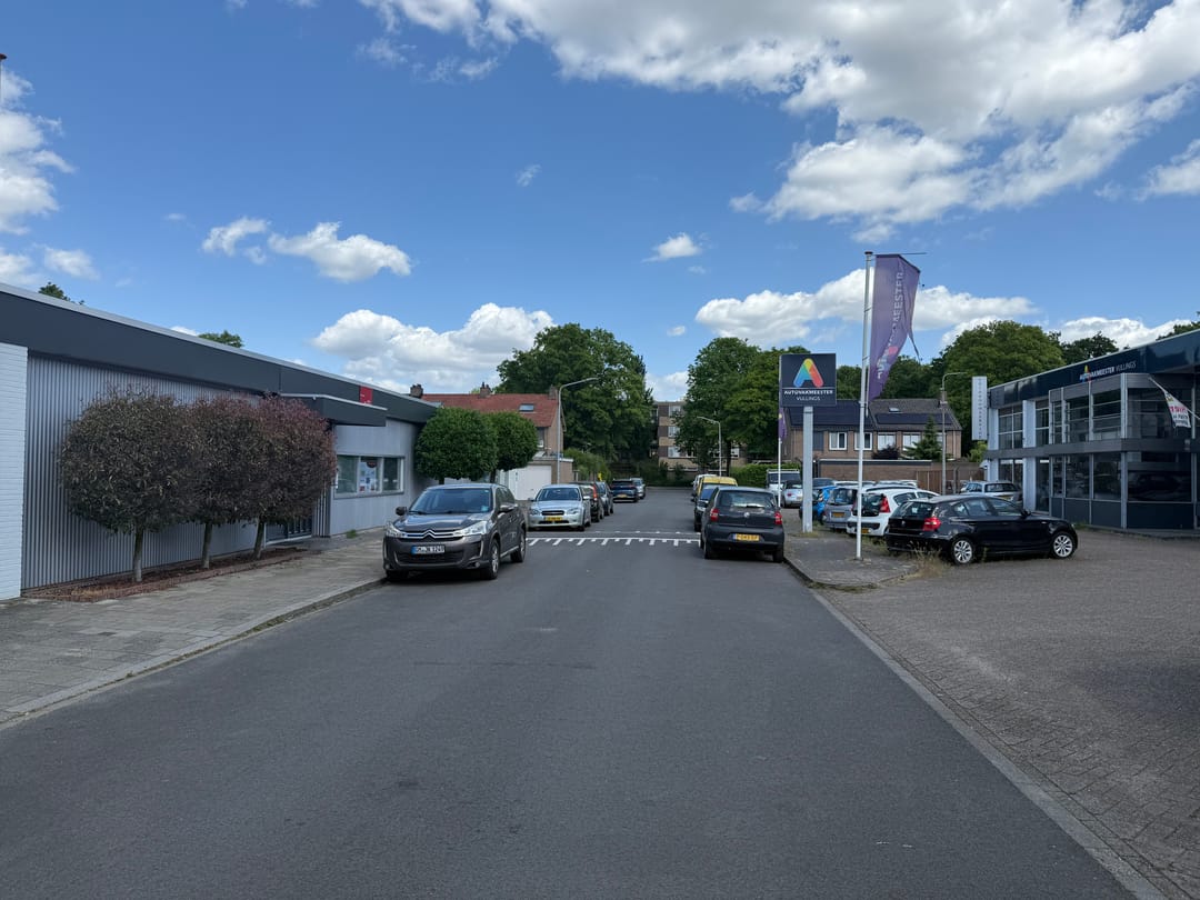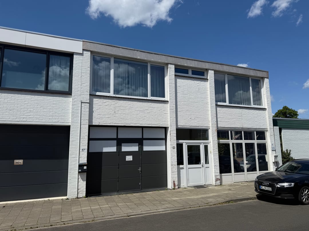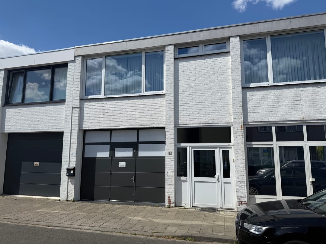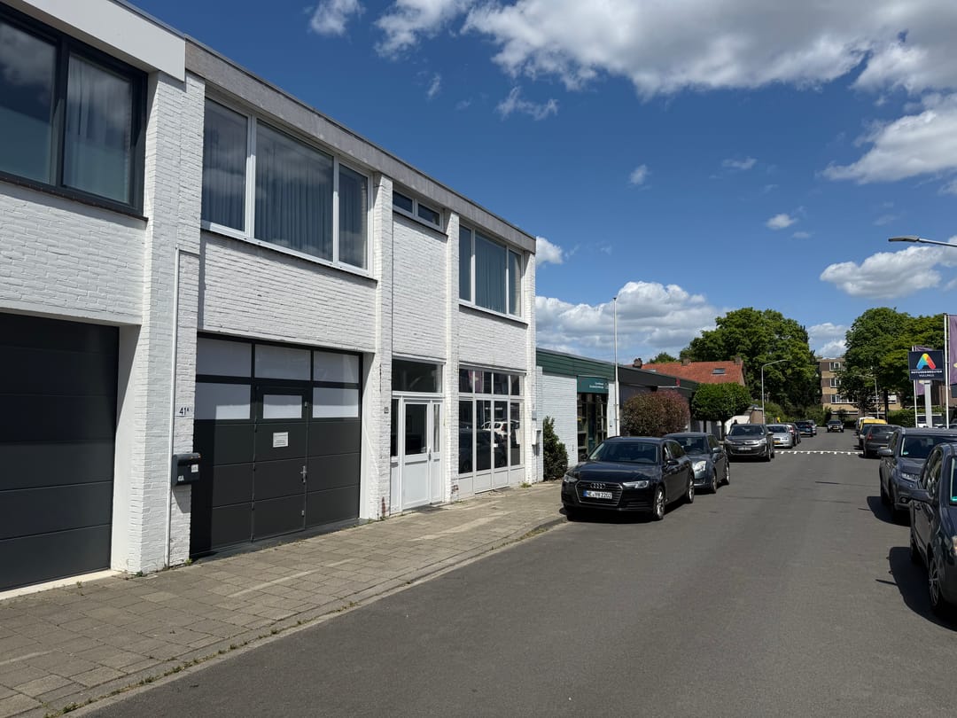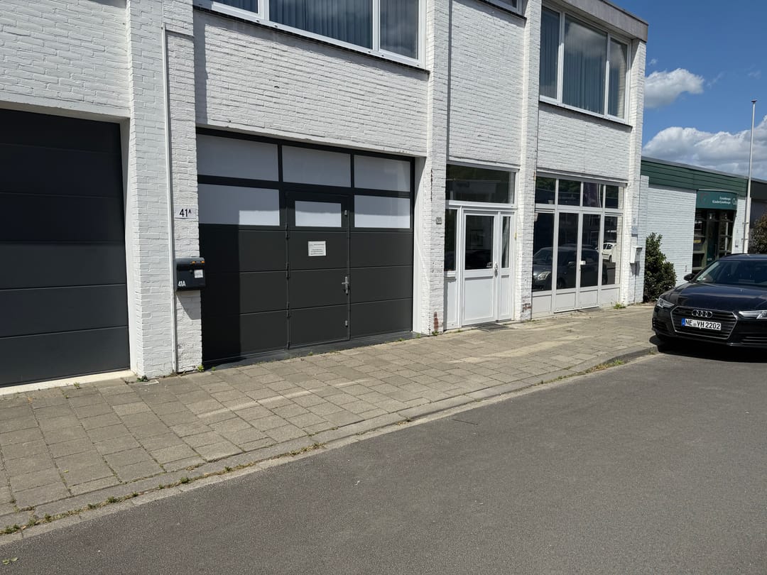 Aan de voorzijde bevindt zich een separate berging/garage van de eigenaar en direct daarachter ligt de aangeboden ruimte van in totaal ca. 60 m².