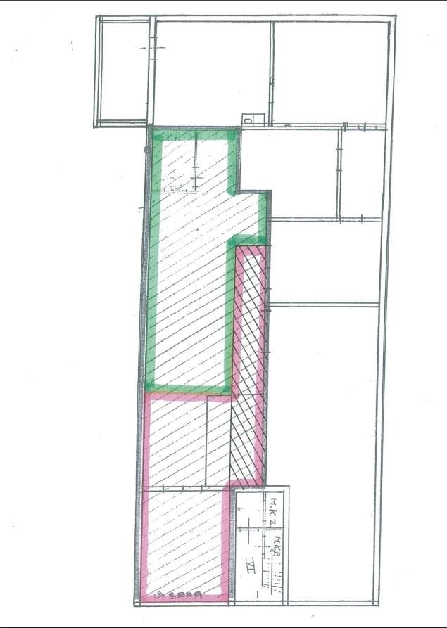 Totale oppervlakte begane grond: BVO - ca. 60 m² (groen gearceerde gedeelte op de plattegrond).