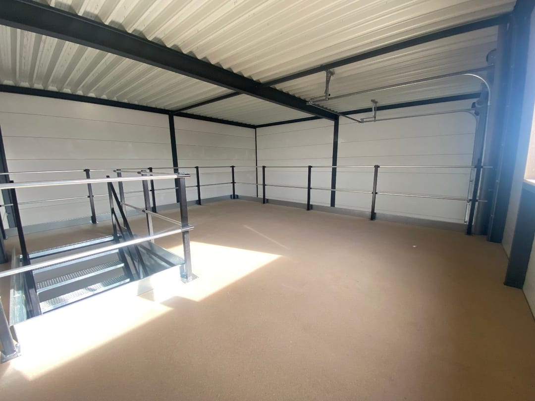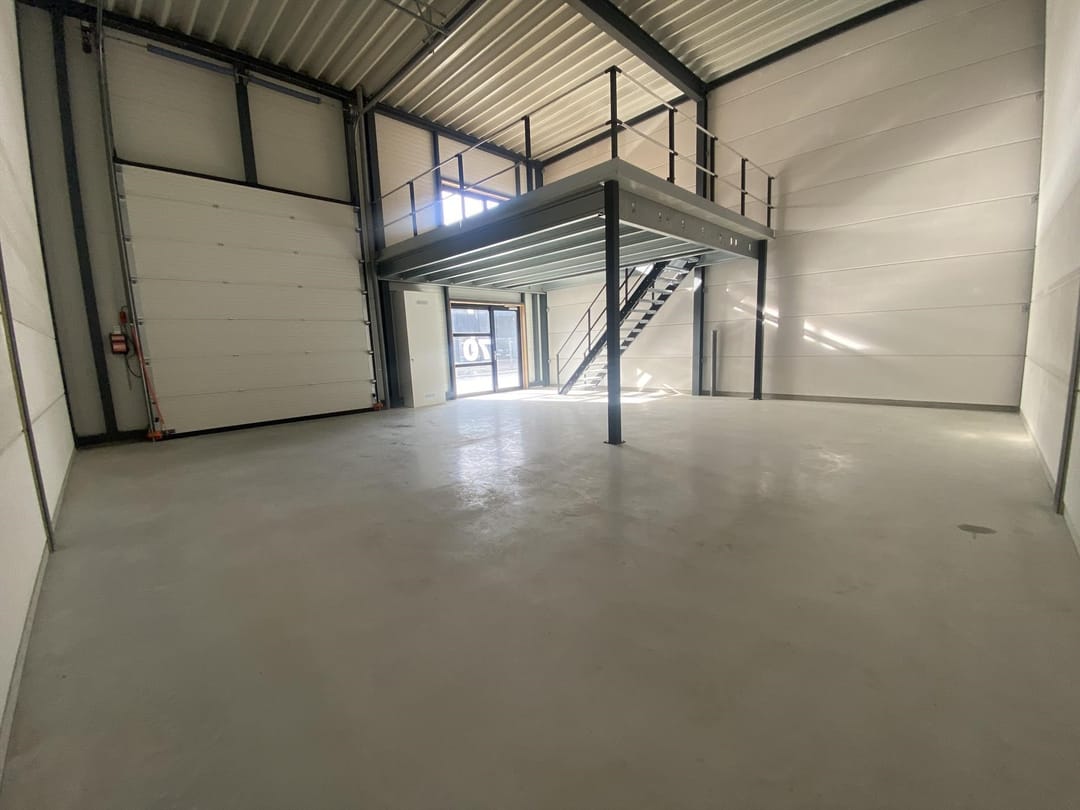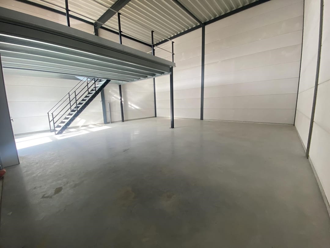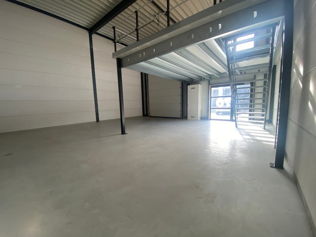 Bedrijfsruimte: Begane grond 100m2 (10 X 10) en een vrije hoogte ±6,30 met elektrisch te bedienen sectionaalpoort circa 3,5 m x 4,1 m, gevlinderde betonvloer, meterkast met krachtstroom (3 x 25 Ampère op basis van 230 Volt), water en internetaansluiting. In de bedrijfsunit zit een klein keukenblok met boiler en apart toilet. In overleg met de verhuurder kan tegen een meerprijs de wandcontactdozen en verlichting worden gemonteerd. 1ste verdieping door middel van interne vaste trap te bereiken kantoor/magazijn/opslagruimte BVO 27,5m2 (5,5 X 5) welke ±2,5 hoog en beschikt over een balustrade. Aanvaarding: 1-1-2025. Huurprijs € 900,-- excl. btw, €50,-- servicekosten excl. BTW en excl. gas/water/elektra.