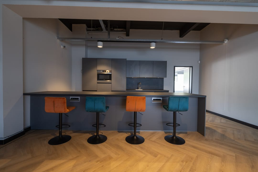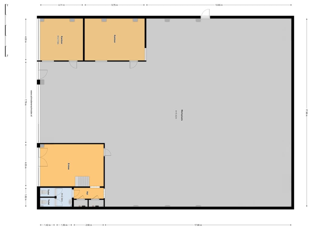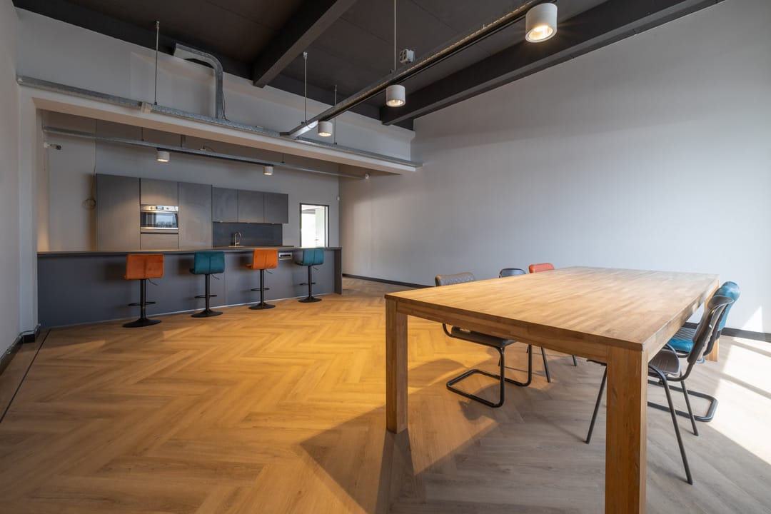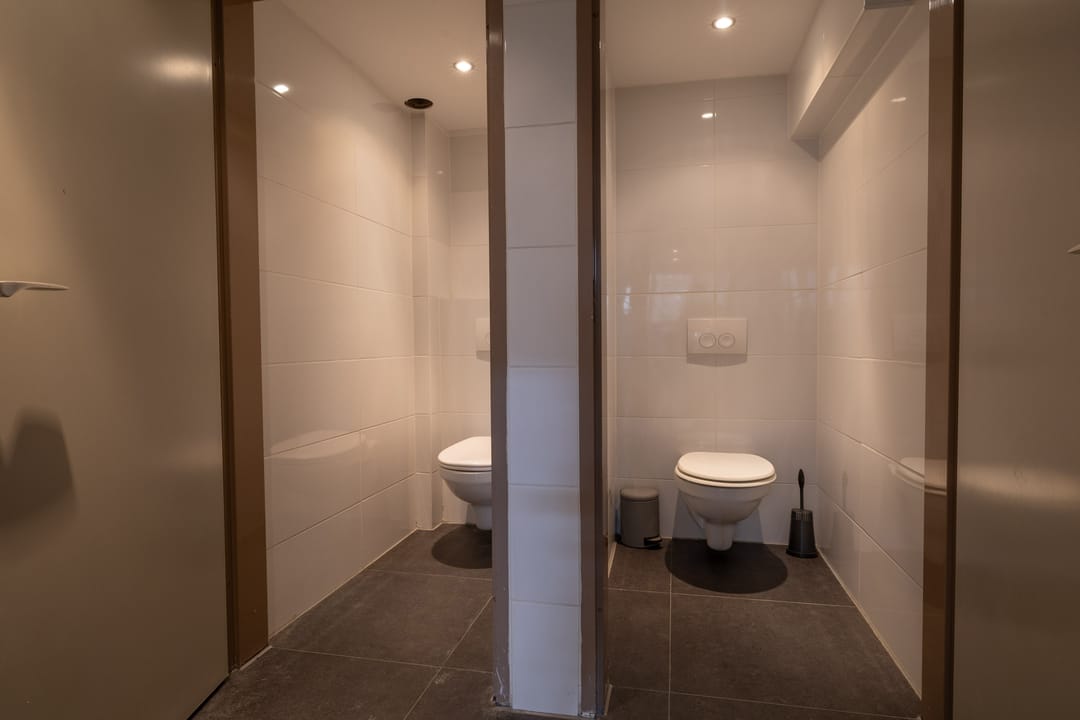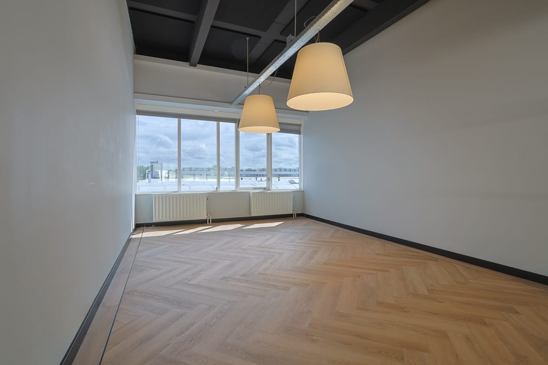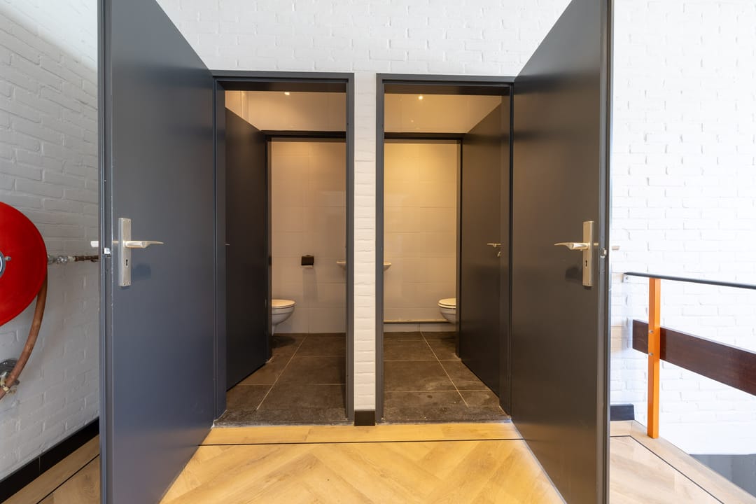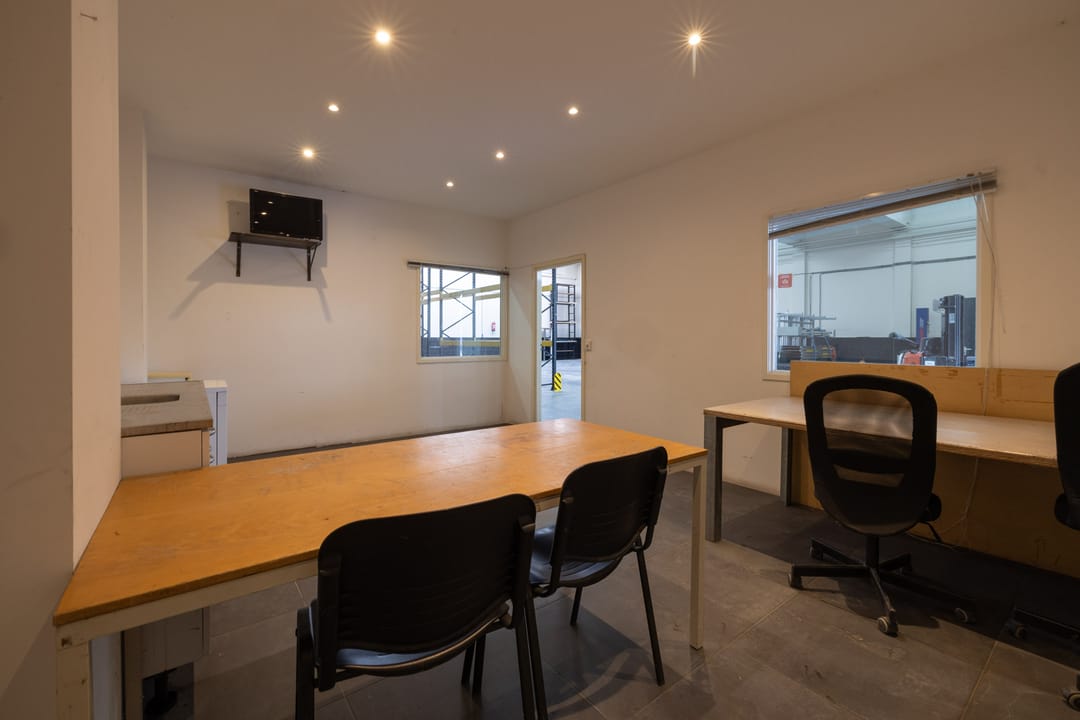 - Airconditioning, overheaddeuren, krachtstroom, betonvloer, heater, toilet, pantry, inbouwarmaturen en te openen ramen