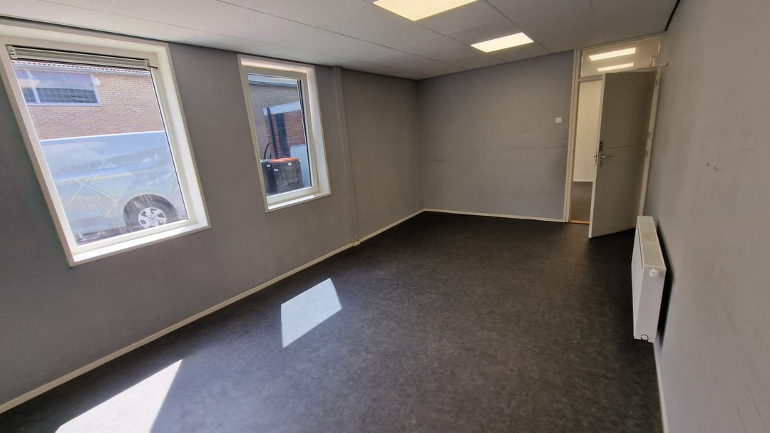 Entree via de deur aan de zijgevel. De ruimte bestaat uit een begane grond ideaal voor uw praktijkruimte, showroom, kantoorruimte etc. Hier zijn 2 aparte kantoorruimtes en een toiletruimte aanwezig.