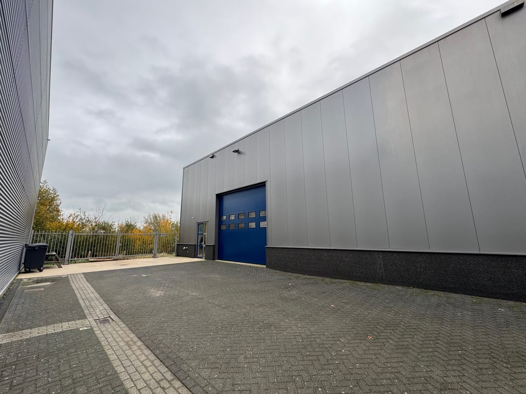 - Hoge en brede, elektrisch bedienbare overhead deur (4.20 x 4.00 meter) zodat de hal makkelijk toegankelijk is.
