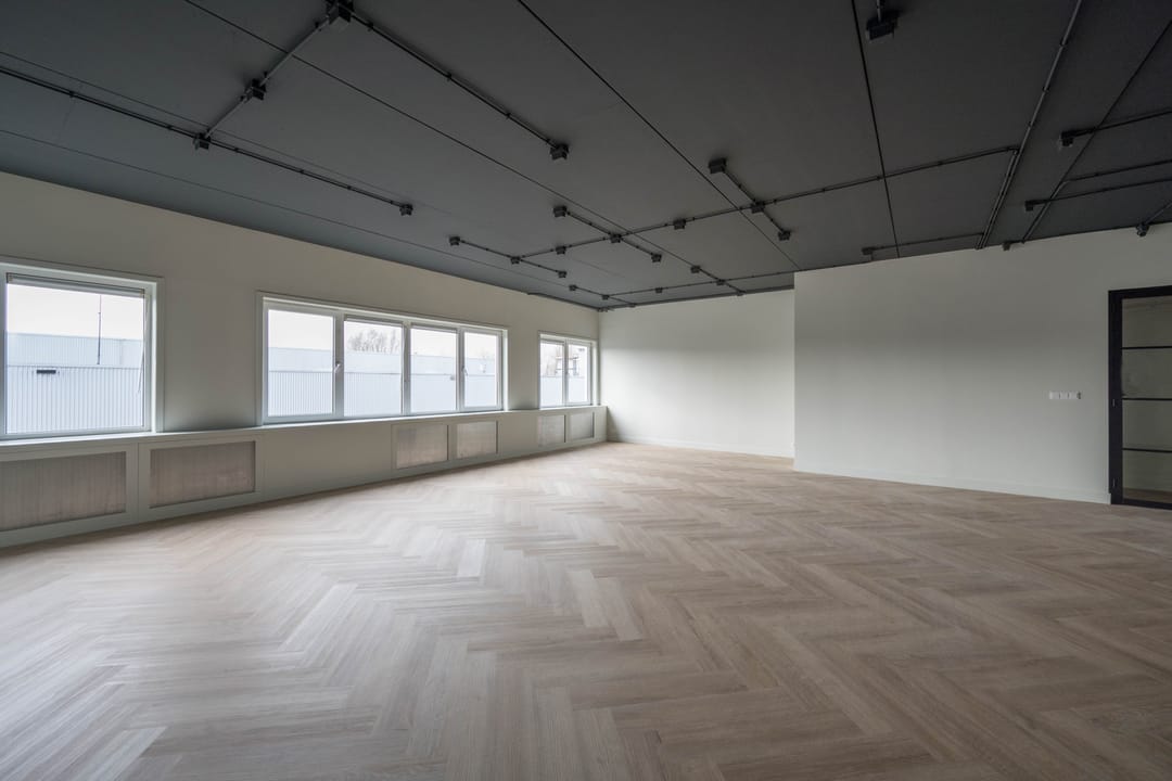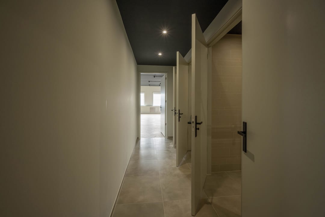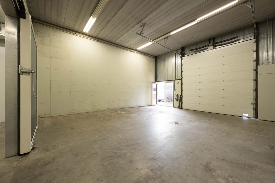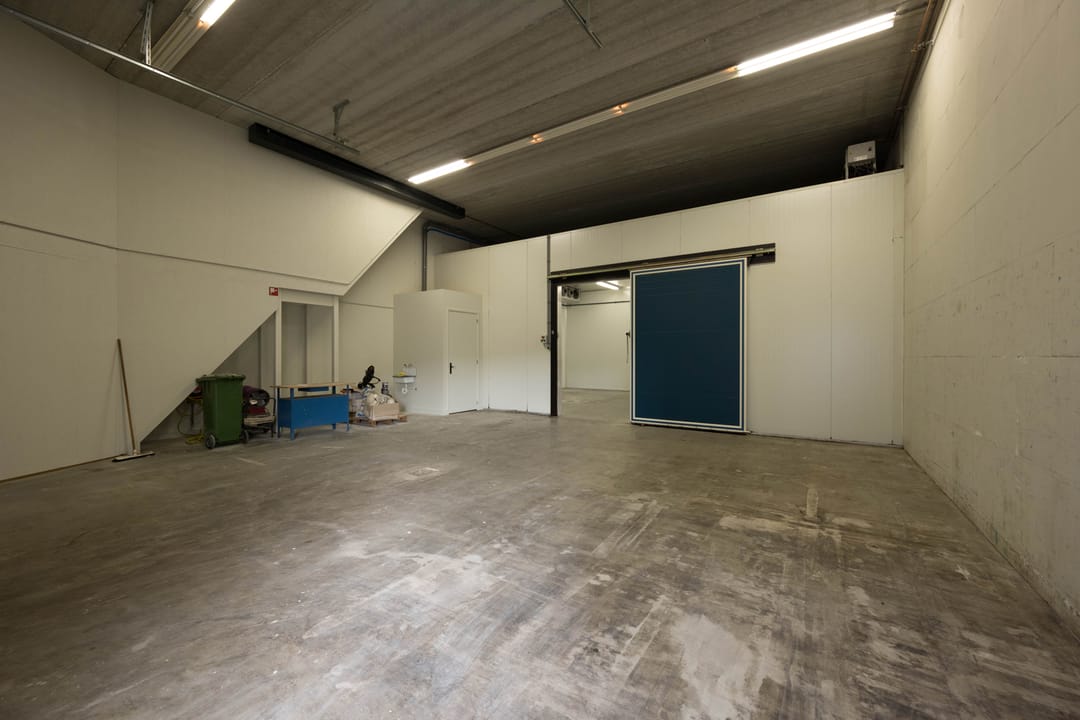 - Overheaddeuren, betonvloer, toilet, inbouwarmaturen en te openen ramen